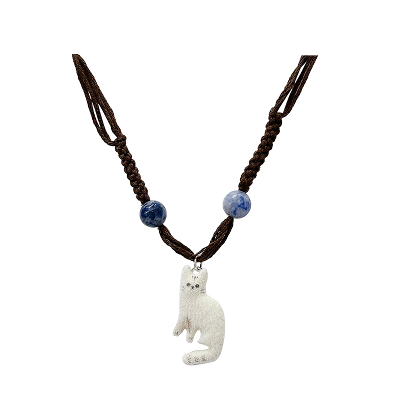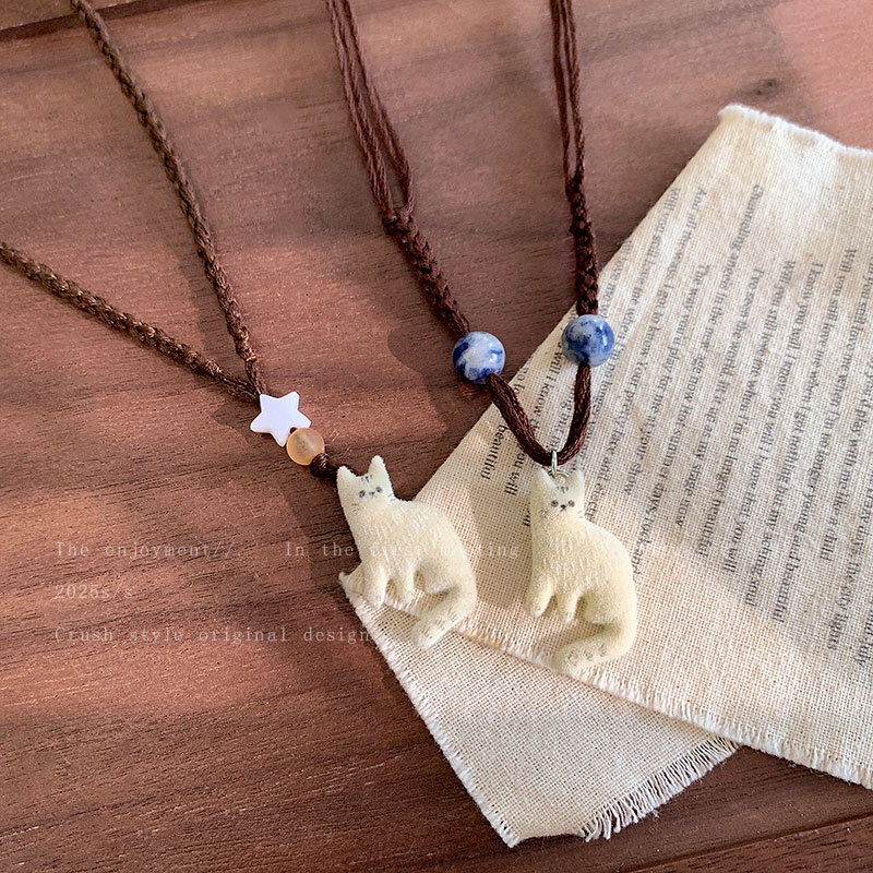 植绒猫咪吊坠编织绳项链配饰女轻奢小众高级感挂脖个性长款毛衣链