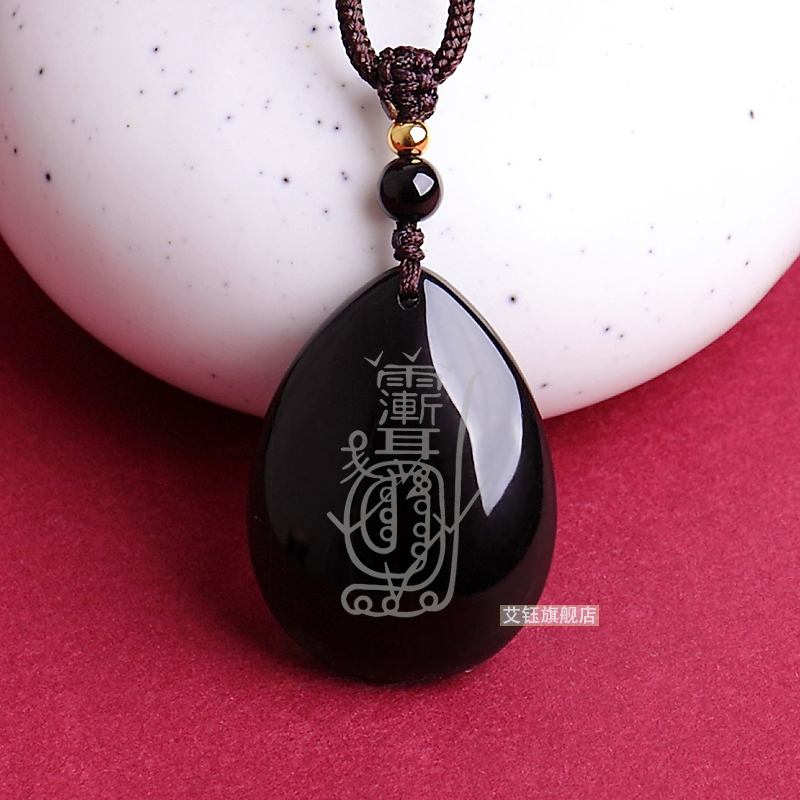 紫薇讳黑曜石金光神咒吊坠道家法器令牌挂件雨渐耳水滴钥匙扣饰品