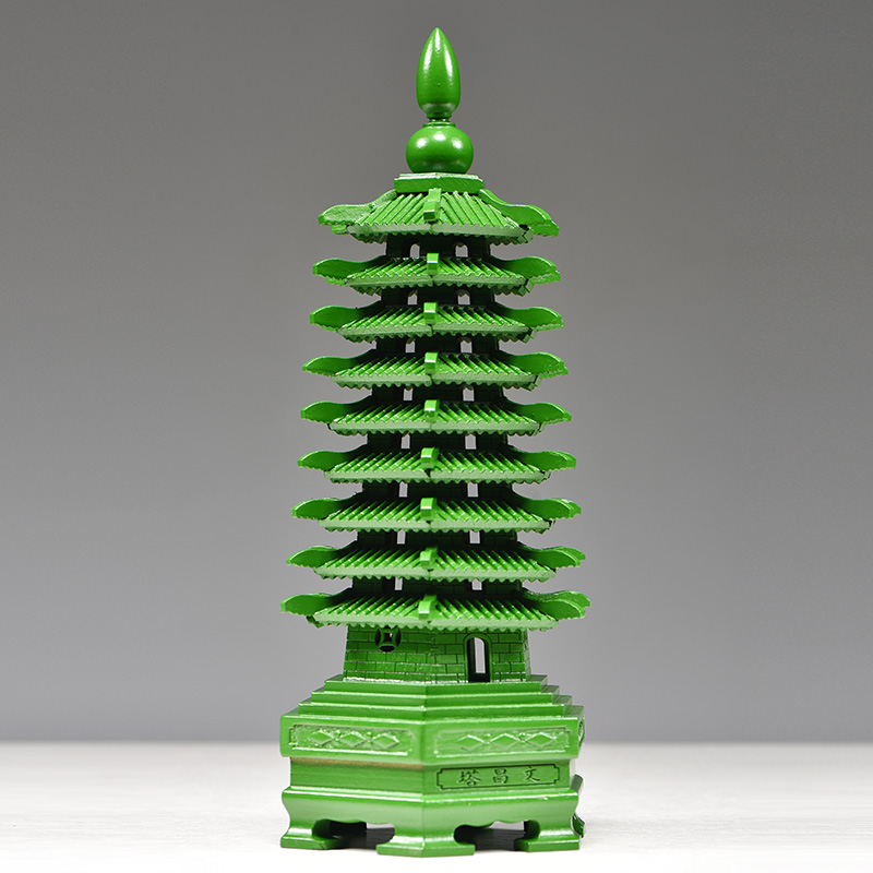 绿色桃木雕刻九层文昌塔摆件木质十三层9层木制客厅书桌书房工艺