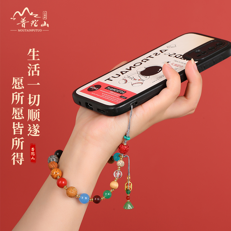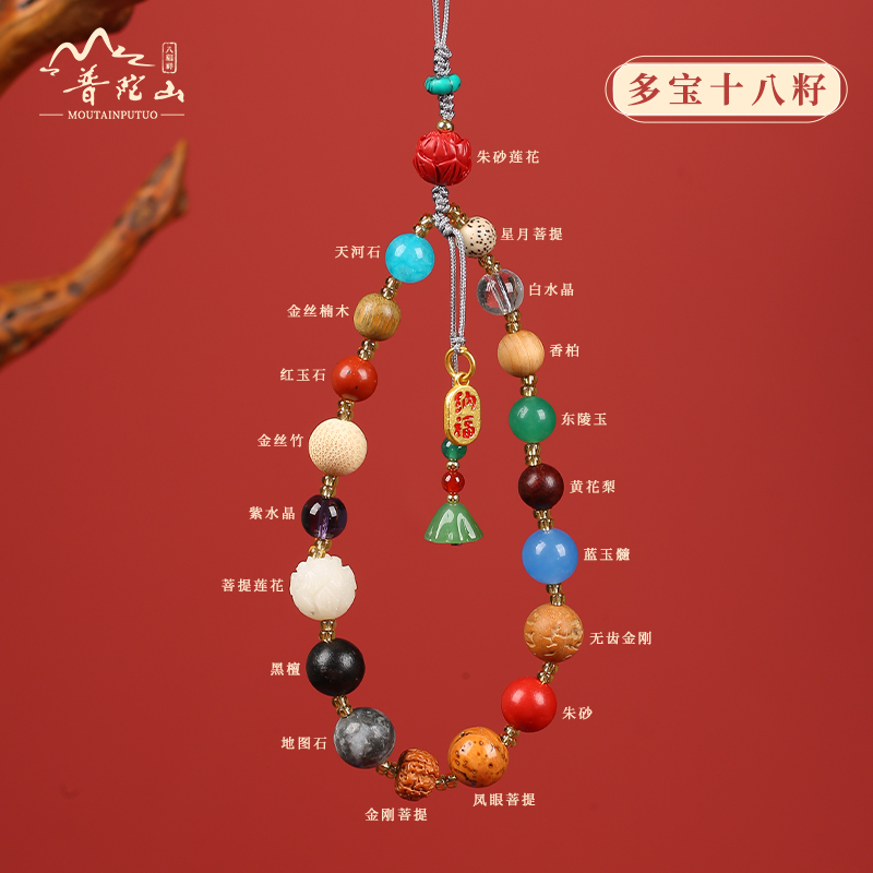 普陀山十八籽手机挂件女多宝菩提串珠F手机链挂饰手腕佛系男士新