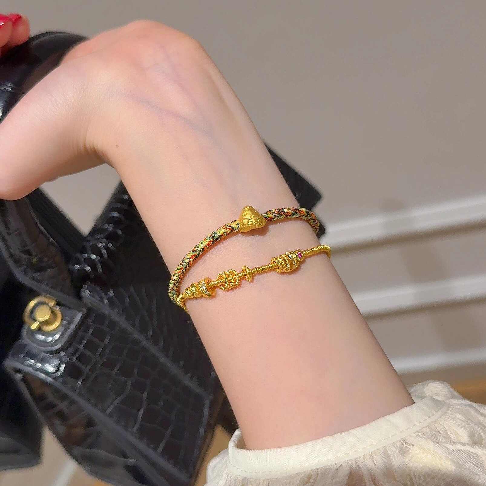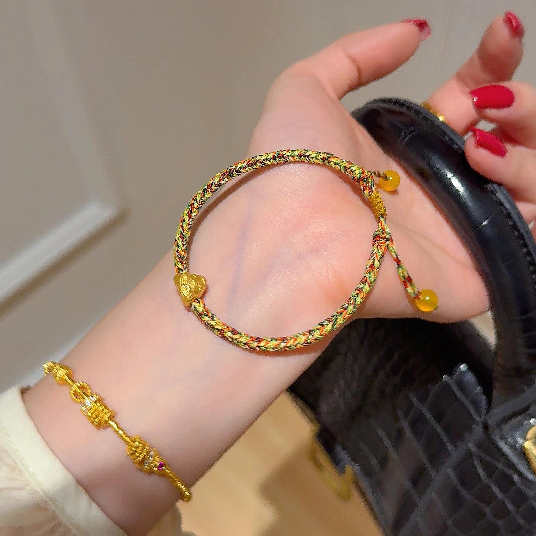 足金小粽子黄金手链男女款编织五彩绳中高考高粽儿童端午节礼物