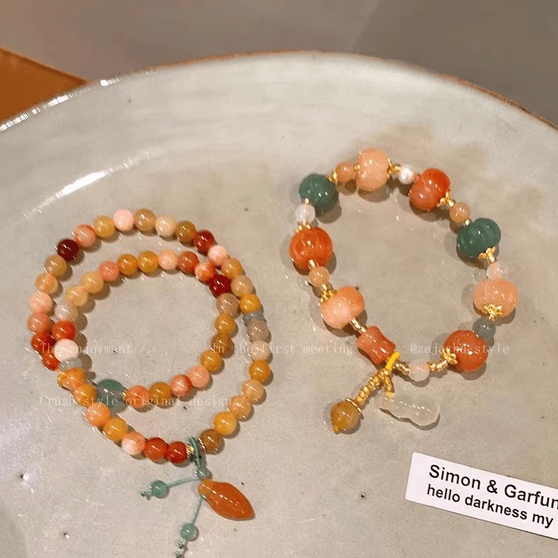 新中式南瓜葫芦串珠手链女新款古风手串国潮小众高级感编织绳手饰