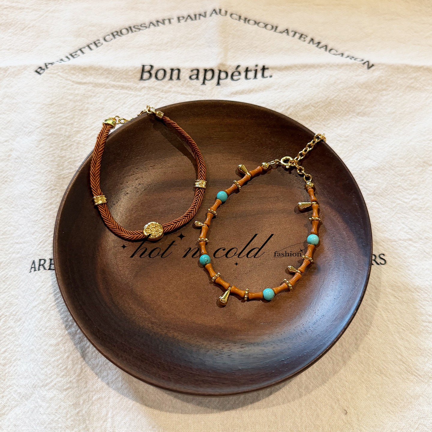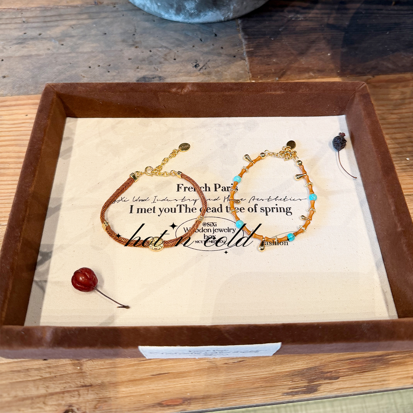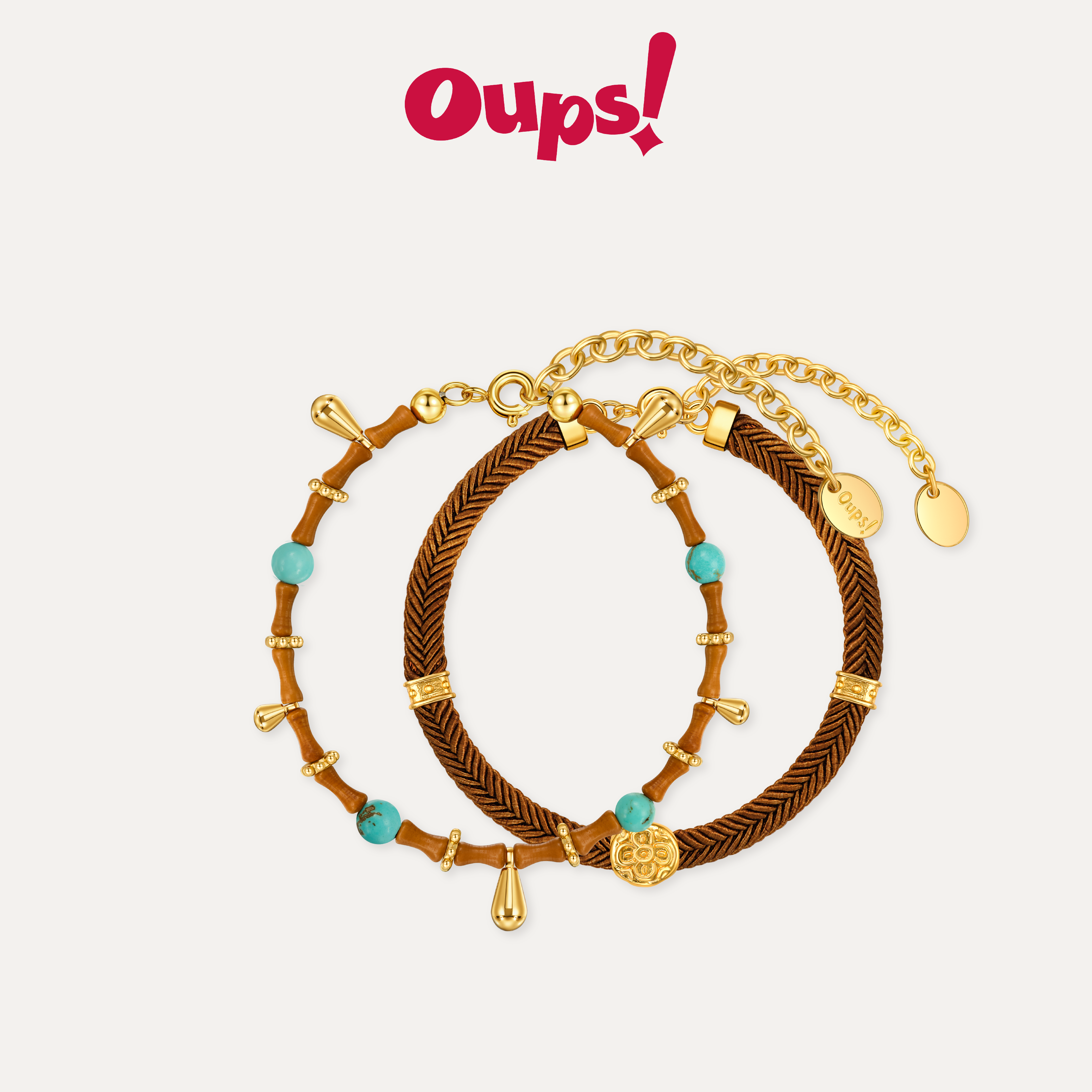 Oups 拉乌棕影手链套组新中式橄榄核手串绿松石手饰女新年礼物