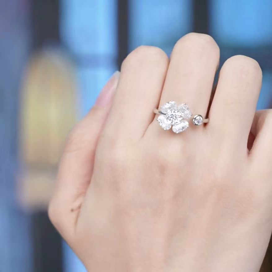 旭平时尚个性闪烁花花转转戒指开口设计甜风美气质指环精致食指戒