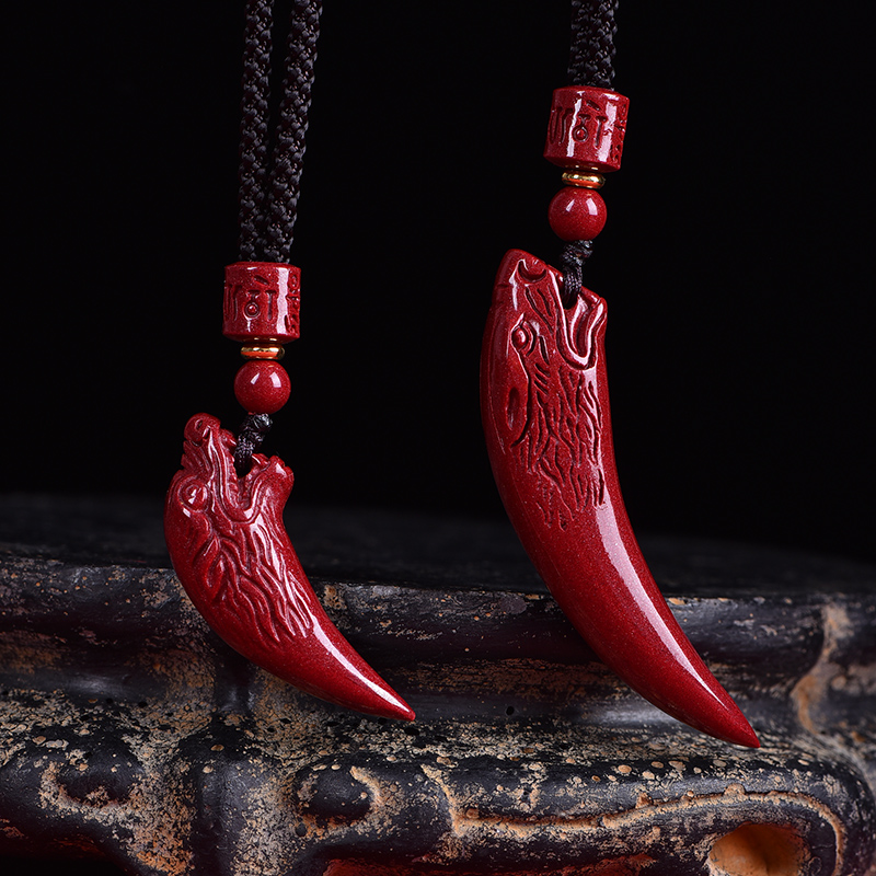 朱砂狼牙吊坠男女士高含量紫金砂钥匙扣挂件项链刻字定制饰品礼物