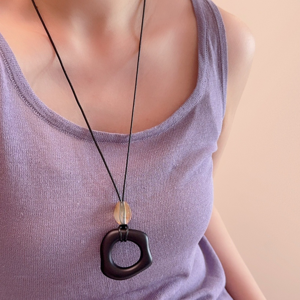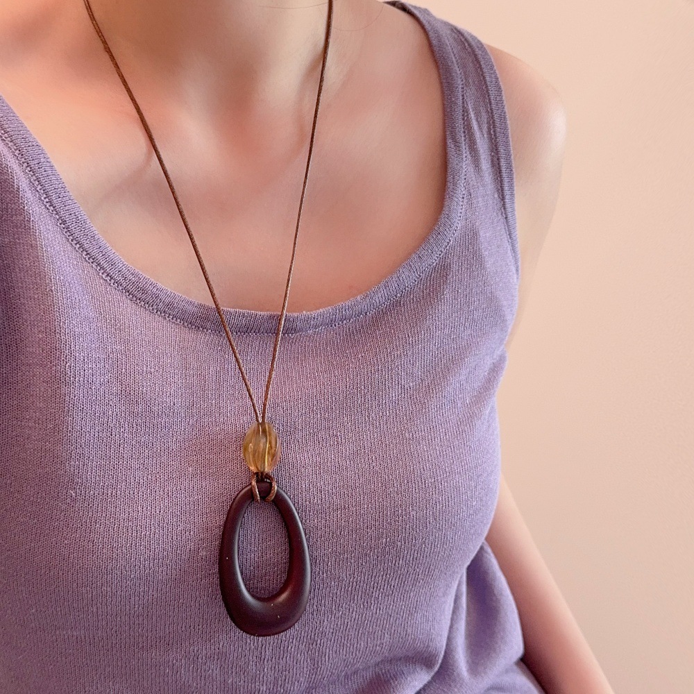 新中式几何水滴形吊坠项链女复古波西米亚度假风长款毛衣链配饰品