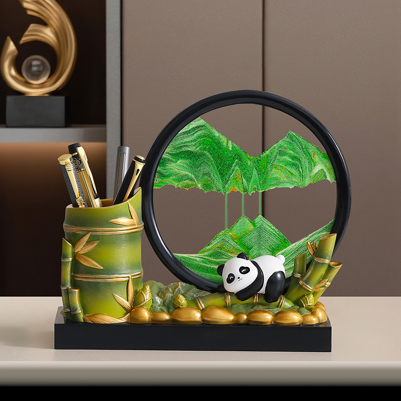 中国风熊猫文创笔筒流沙画摆件办公桌装饰高档毕业礼物送老师实用