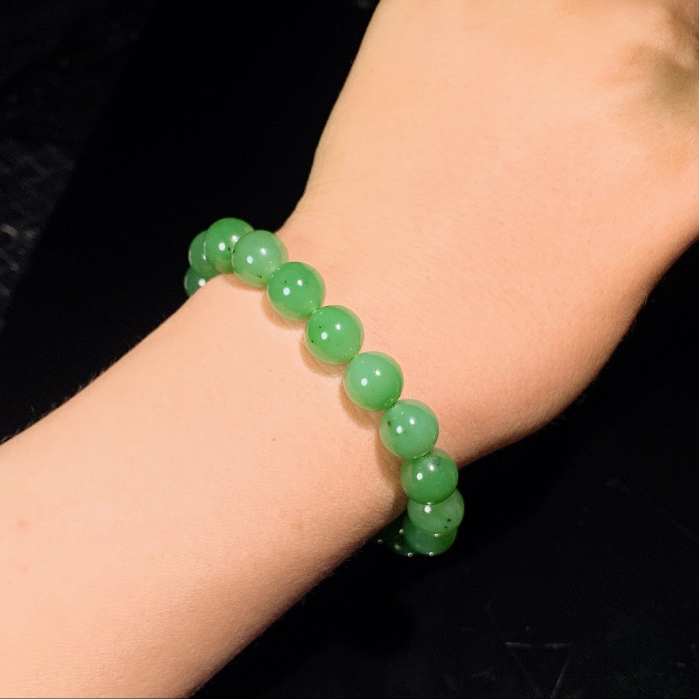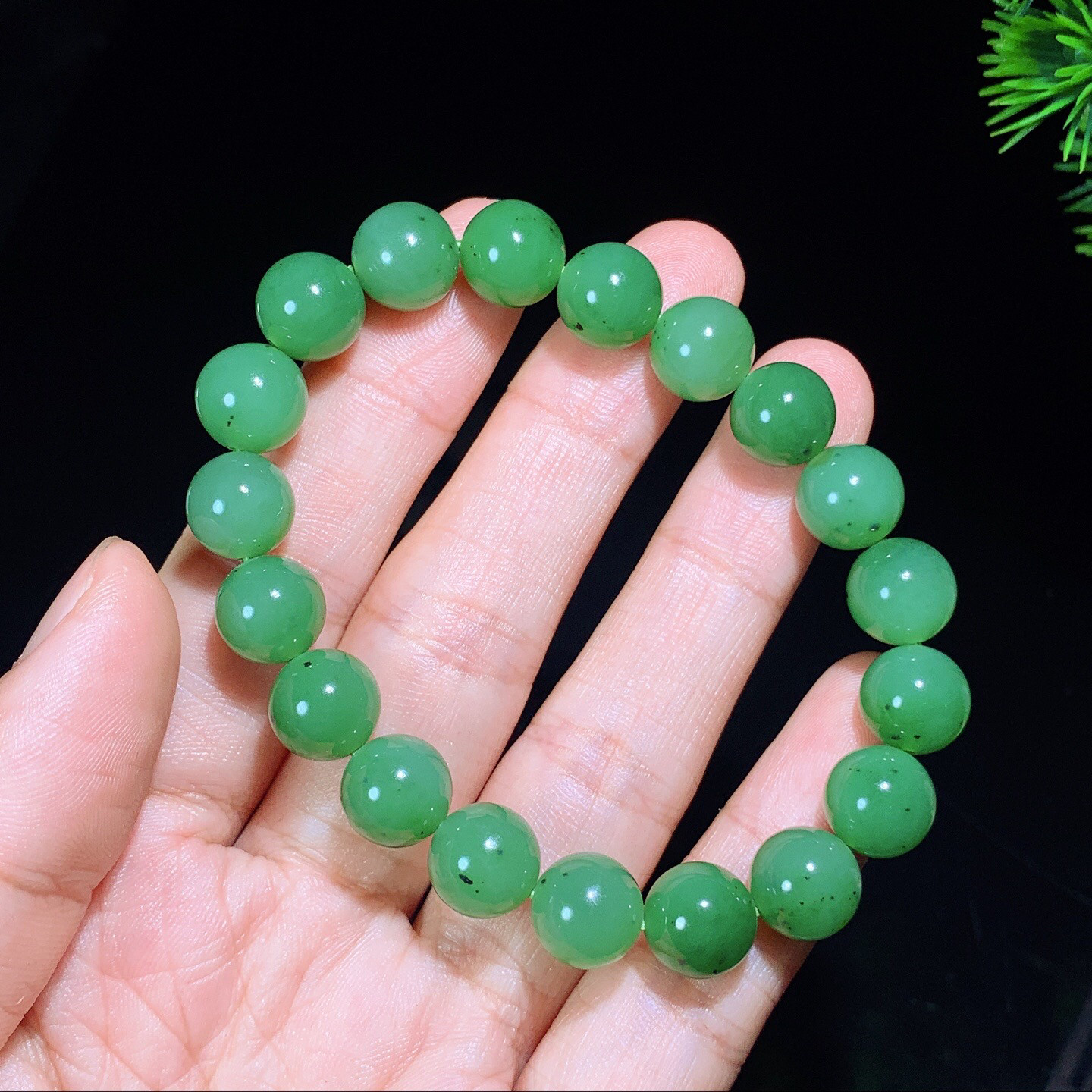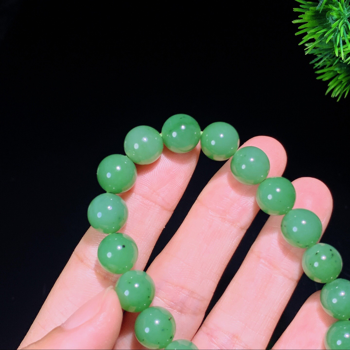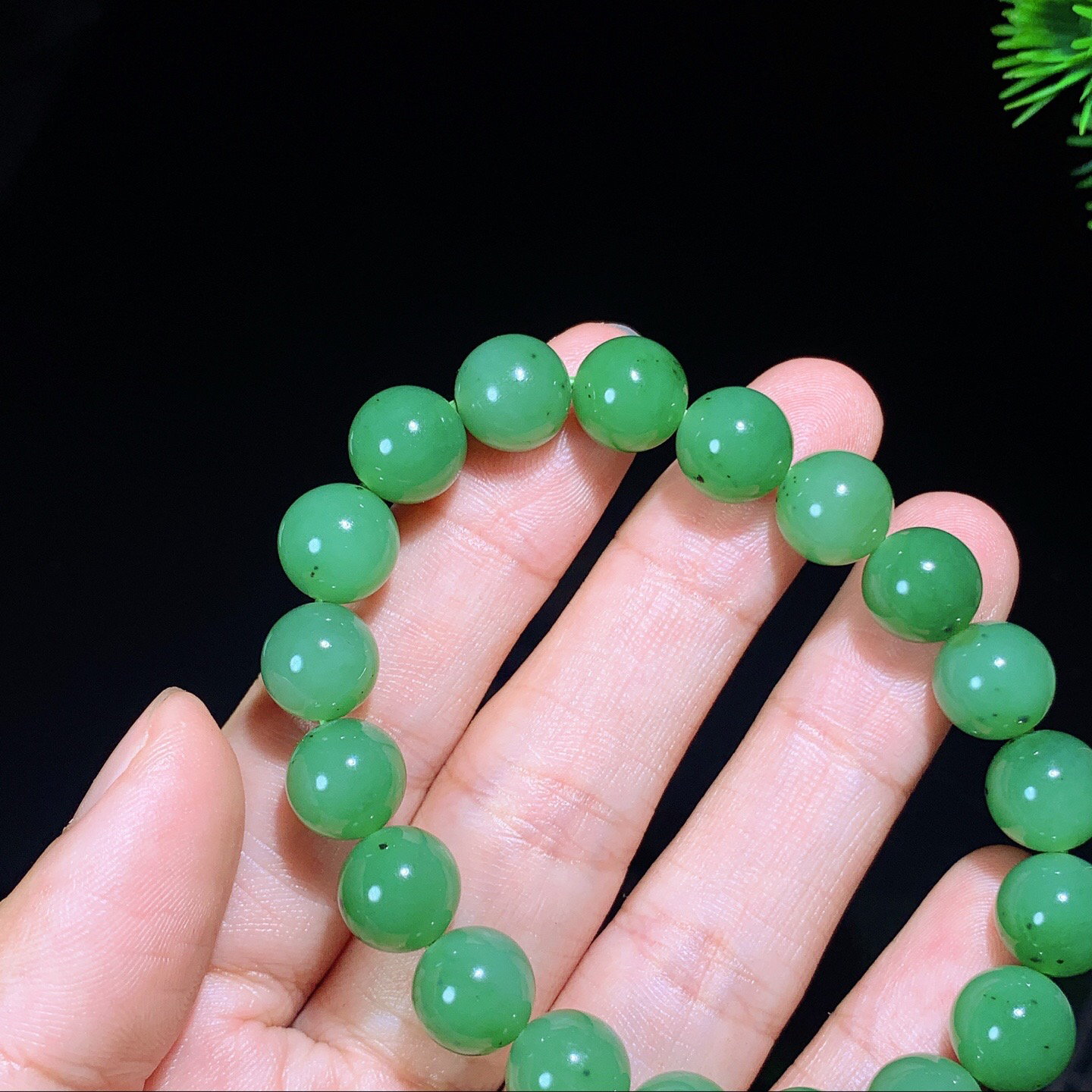 新货爆款纯天然俄料和田玉碧玉圆珠手串苹果绿圆珠手链10mm女款