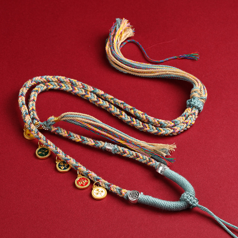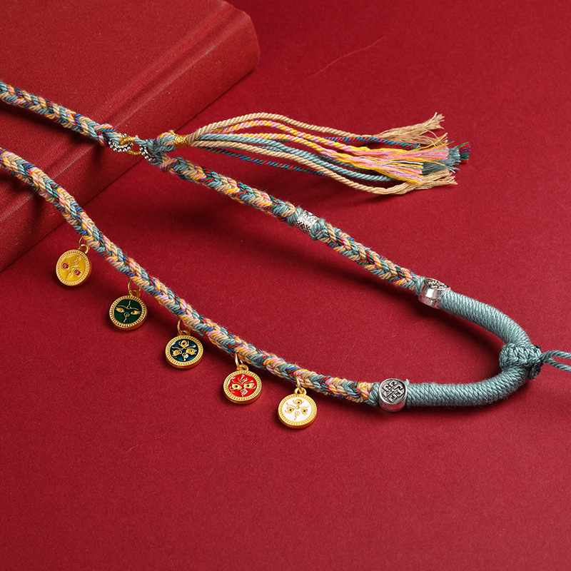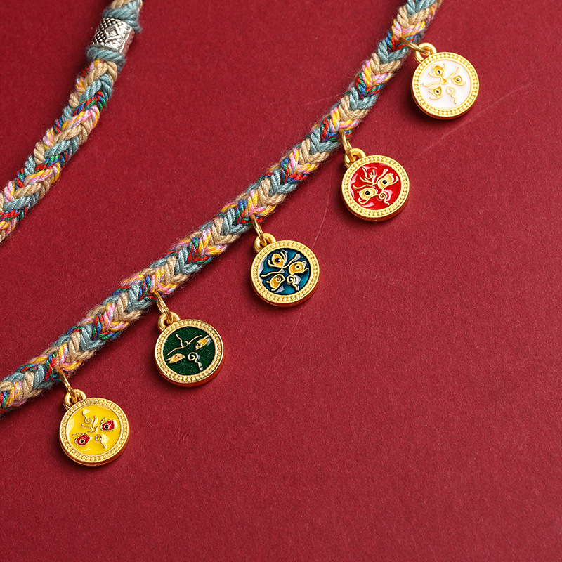 手工编织藏式吊坠项链绳手搓棉五路财神项链唐卡文玩天珠挂件绳