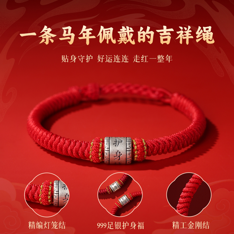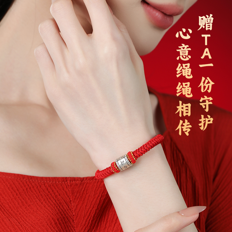 本命年红绳手链S999足银男款红绳编织绳女2026年属马鼠牛兔红手绳