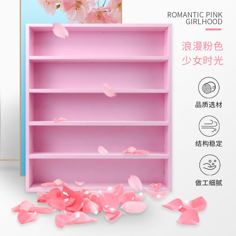 木质彩色置物架儿童书柜可爱粉多层落地书架公仔杂物收纳木质书柜