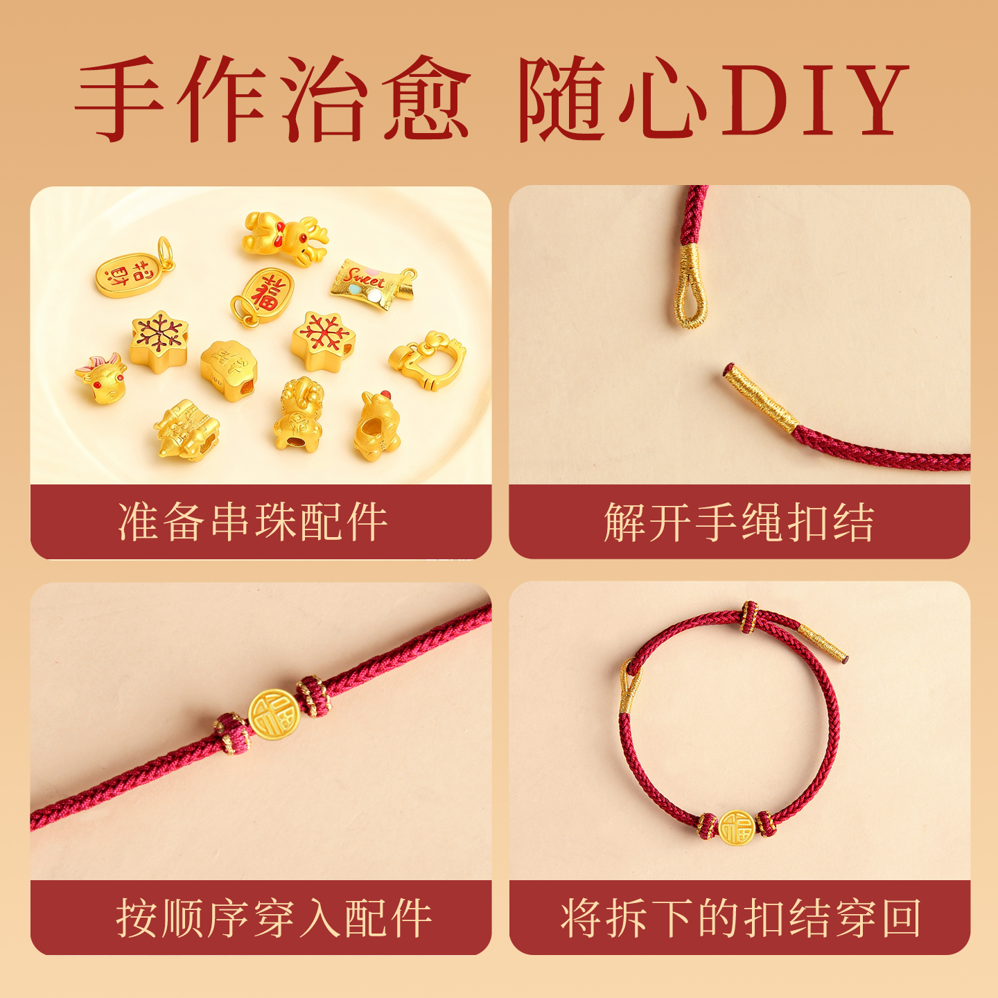 可穿珠黄金转运珠diy手工编织红绳手链半成品男女编织好运手绳