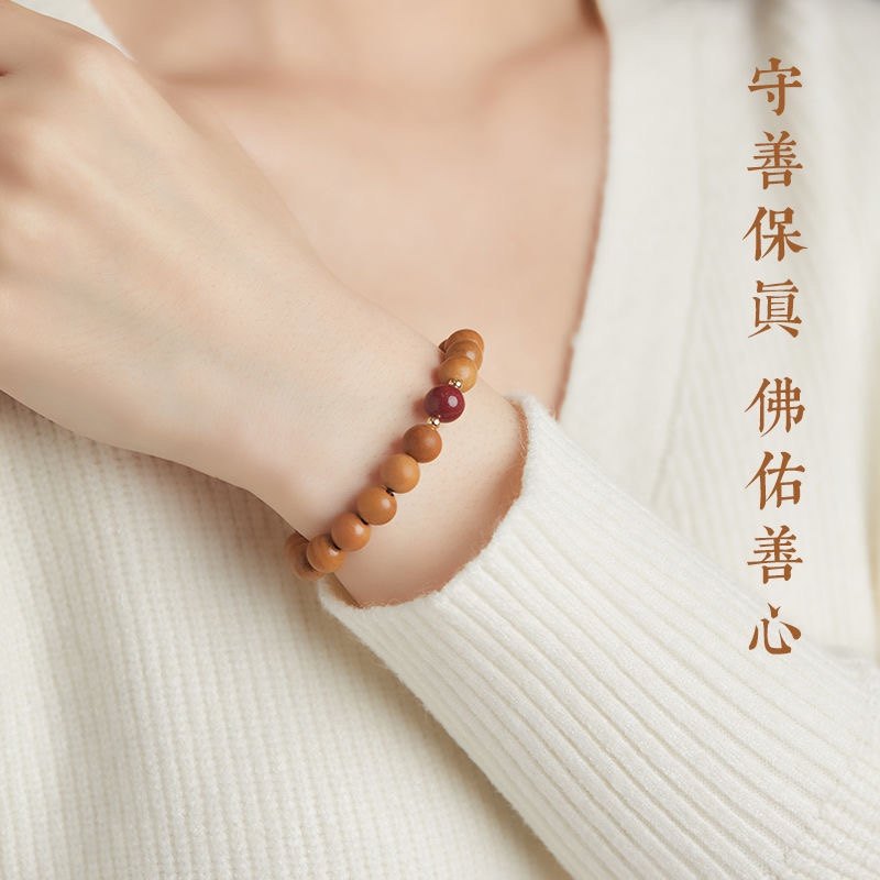 桃木手串女款新中式静心手串男佛珠护身朱砂转运珠桃木手链女国风