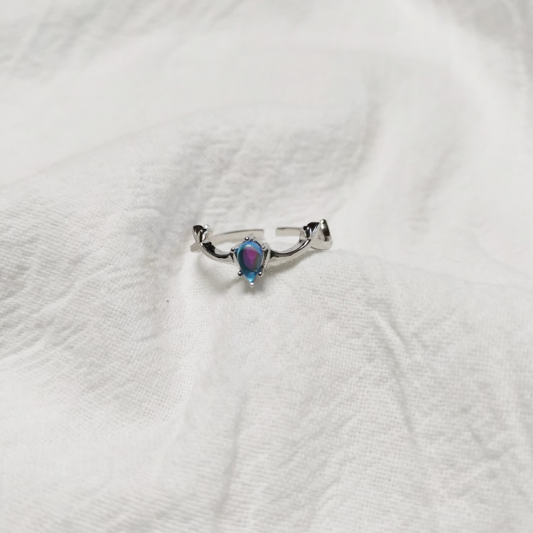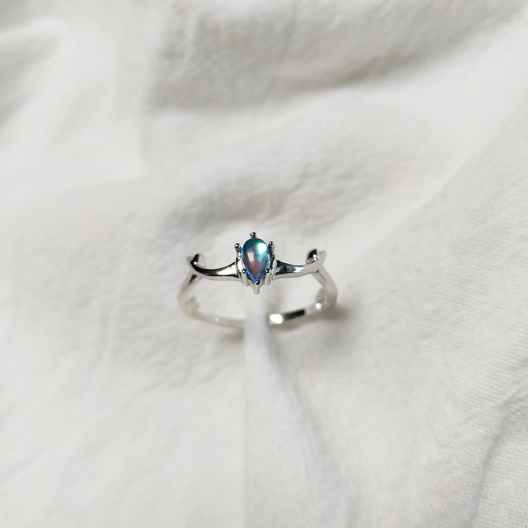 蓝色宝石麋鹿角925纯银开口戒指环女日韩版冷淡风时尚气质食指戒