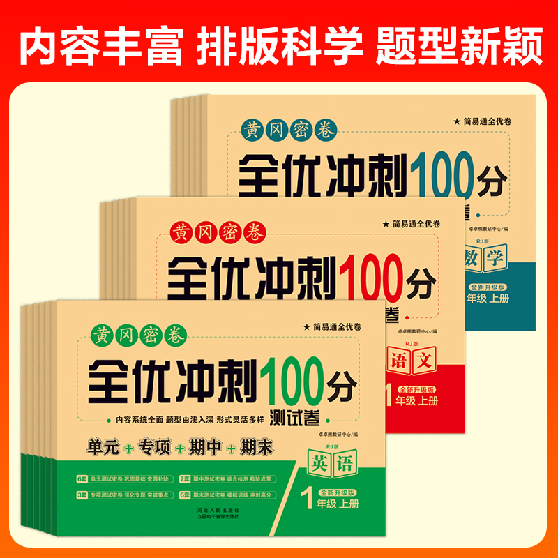 2025新版黄冈密卷全优冲刺100分试卷一二年级三年级四年级五六年级上册语文数学英语测试全套小数学人教版快乐读书吧开学大礼包