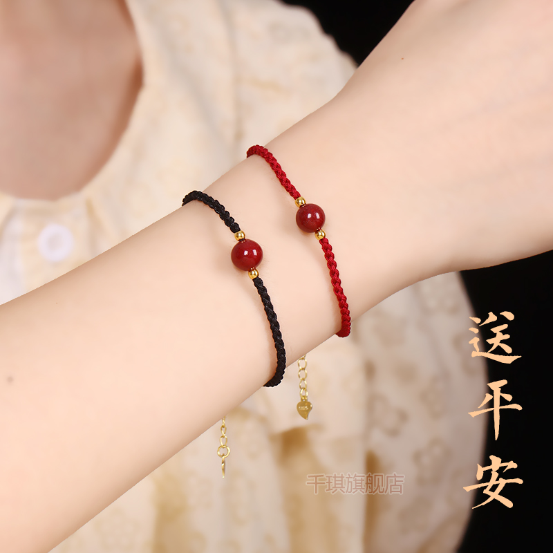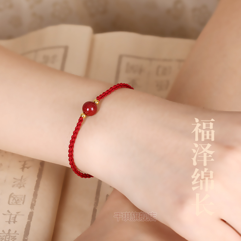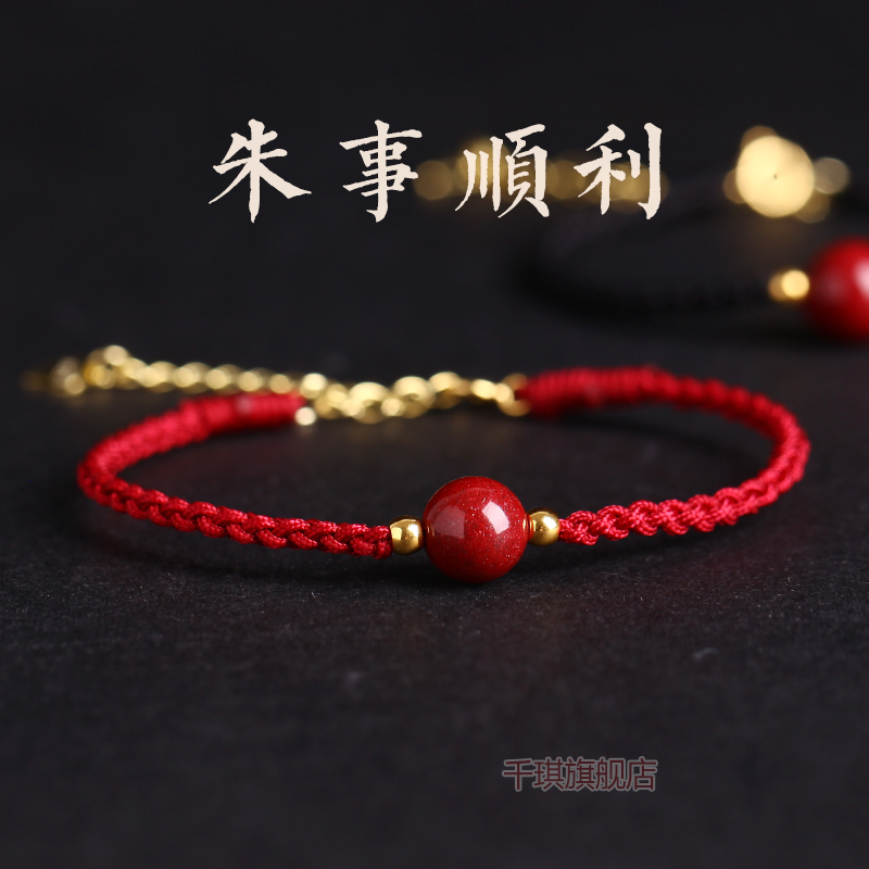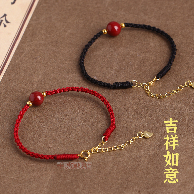 朱砂手链女足金黄金转运珠红色本命年红绳手串男情侣编织手绳礼物