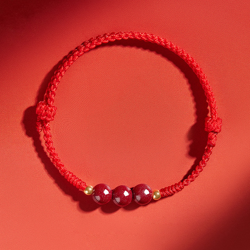 龙年本命年红绳手链女生朱砂手串护身符转运珠红色手绳编织男
