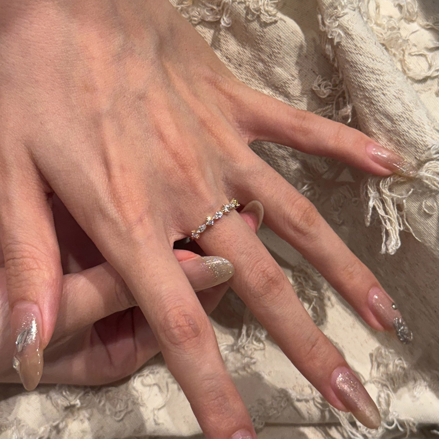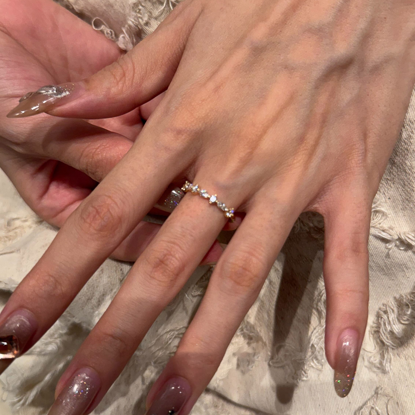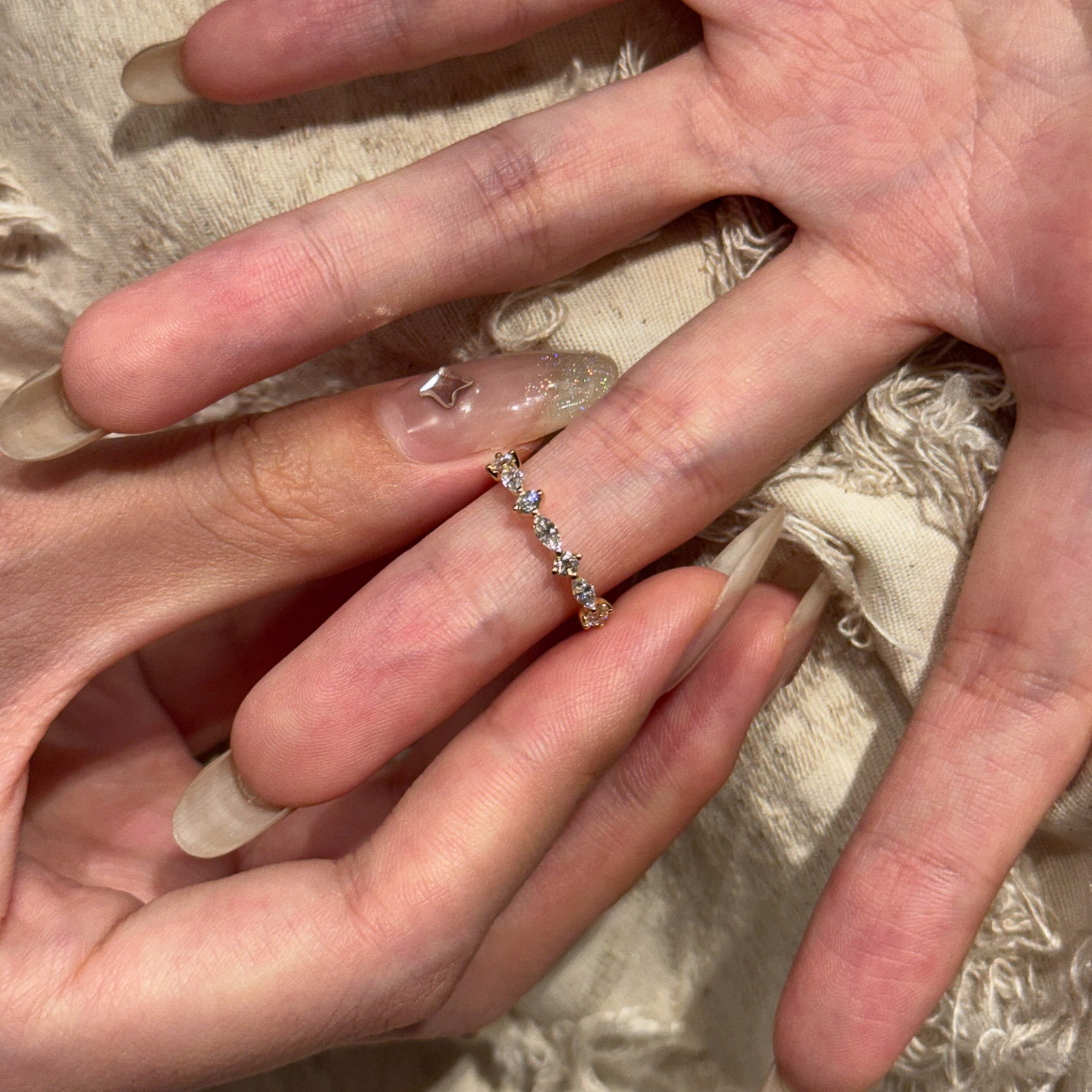细款金色仿排钻戒指女小众设计精致百搭开口食指戒轻奢高级感指环