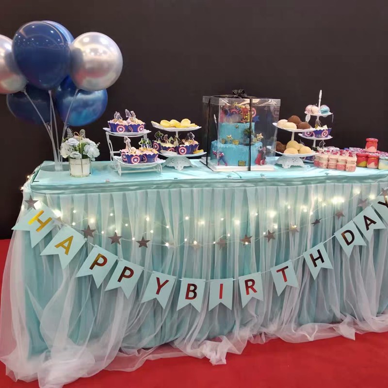 甜品台桌布纱婚礼签到台布置桌围纱网红周岁生日布置蓬蓬纱桌裙纱