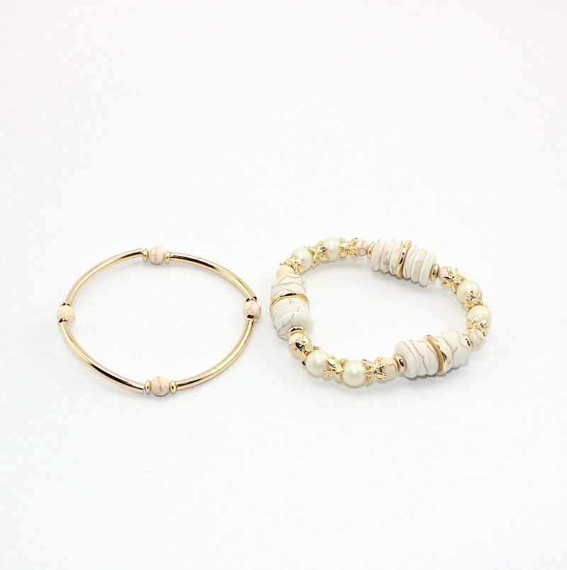 潮流设计开发 欧美风饰品 松石串珍珠手链 弹力线穿铜管个性手链