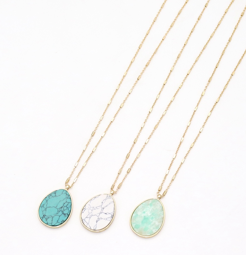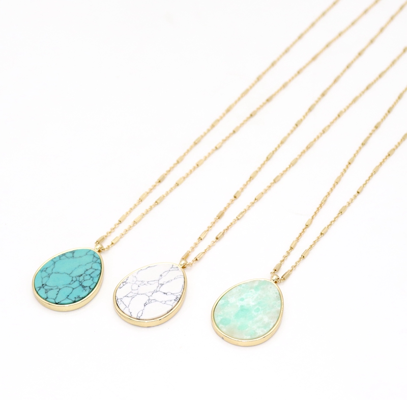 潮流设计开发 欧美风饰品 水滴形松石镶嵌长款精美链子款项链