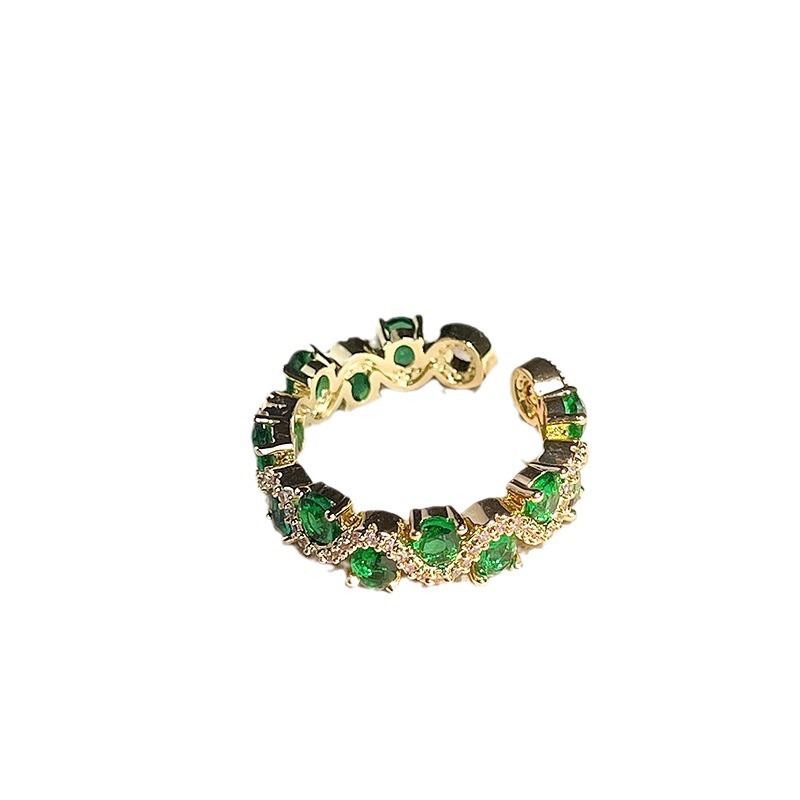 复古祖母绿锆石戒指女小众设计指环轻奢高级感开口可调节食指戒