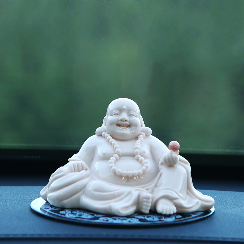 陶瓷弥勒佛像汽车摆件保平安车上中控台装饰创意车内车载用品礼品