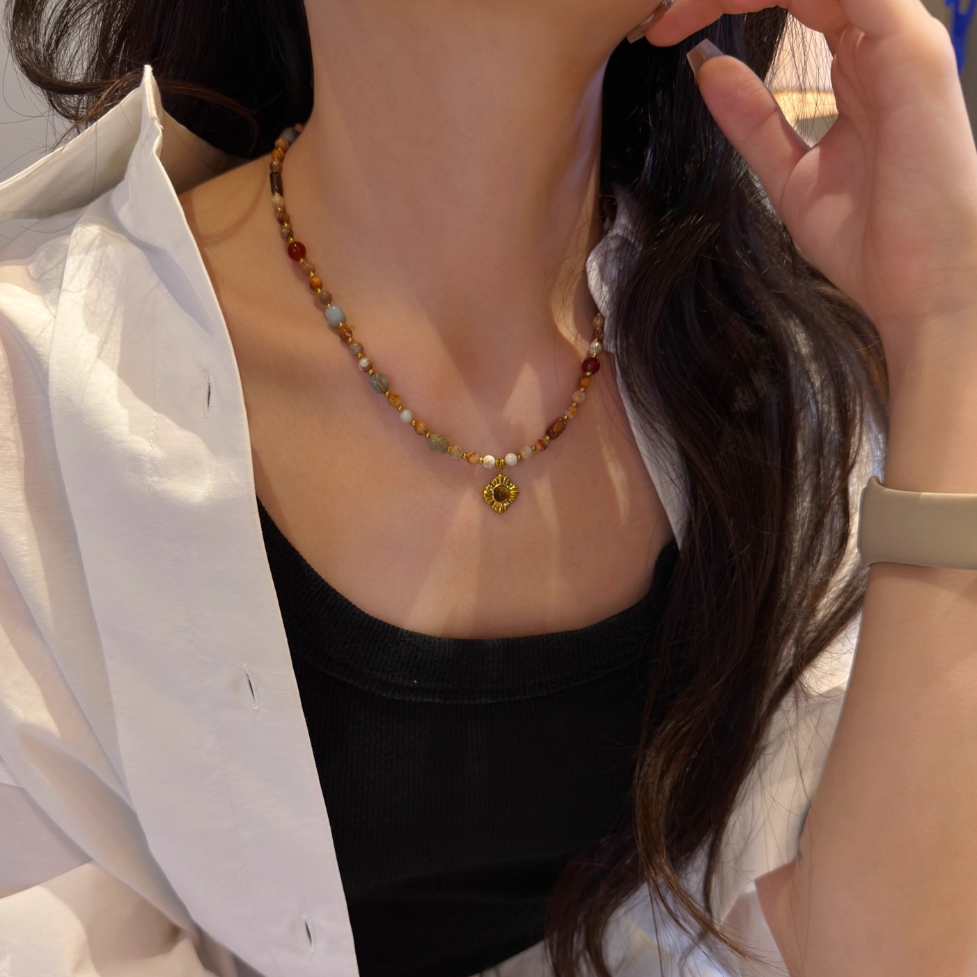 十里间【岚颖】文艺小清新天然石串珠花朵项链百搭叠戴锁骨链
