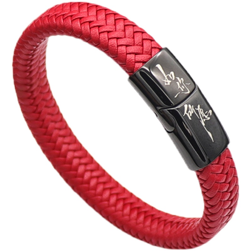 时尚简约红色皮绳编织手链男女本命年个性手环黑色手饰品定制刻字