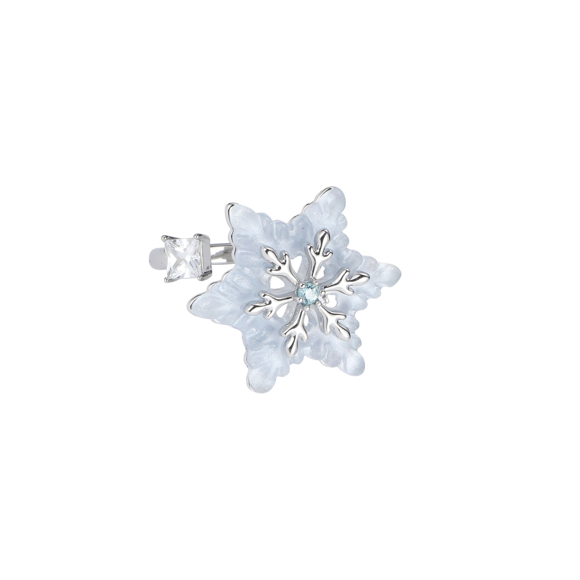 蓝色冰晶雪花戒指女轻奢ins简约小众原创设计精致食指戒开口指环