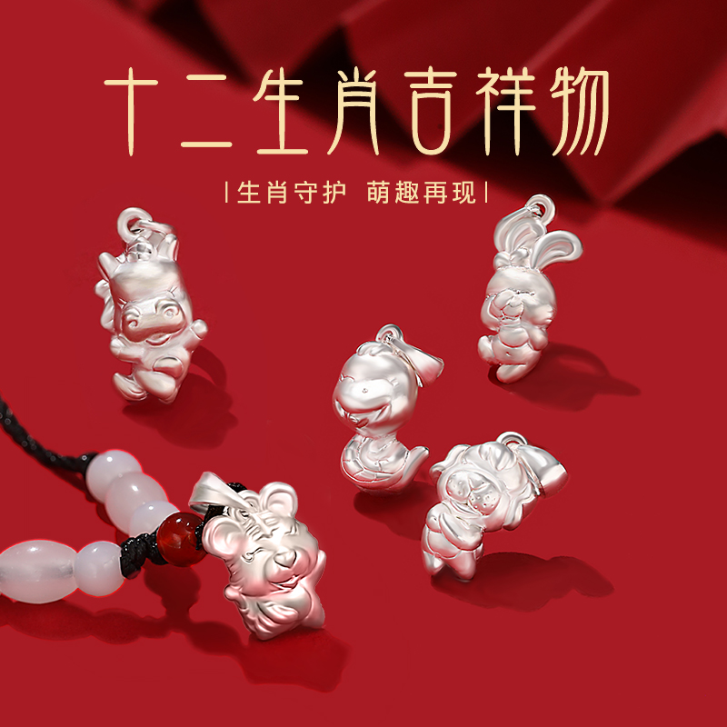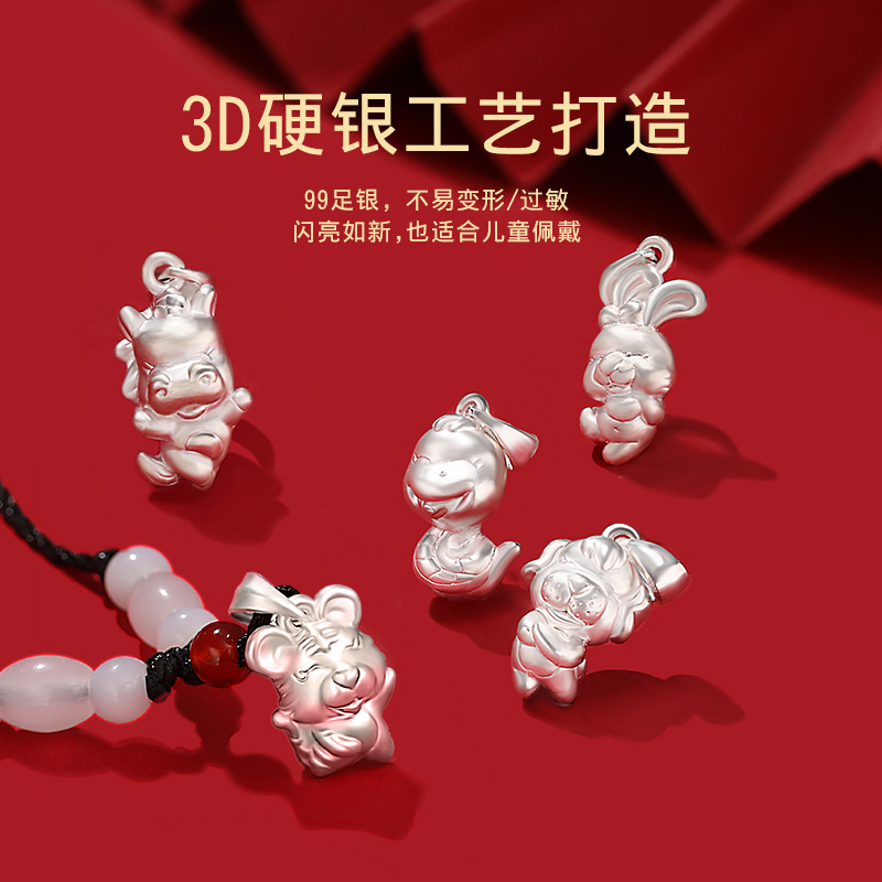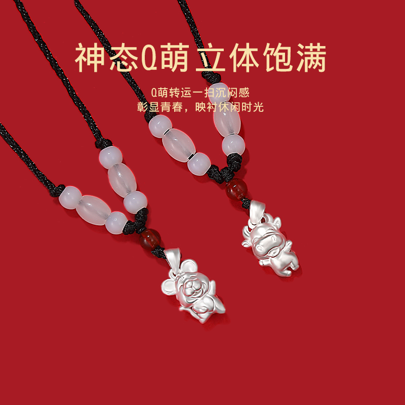十二生肖99纯银项链手工编织红绳黑绳本命年吊坠马年编织绳毛衣链