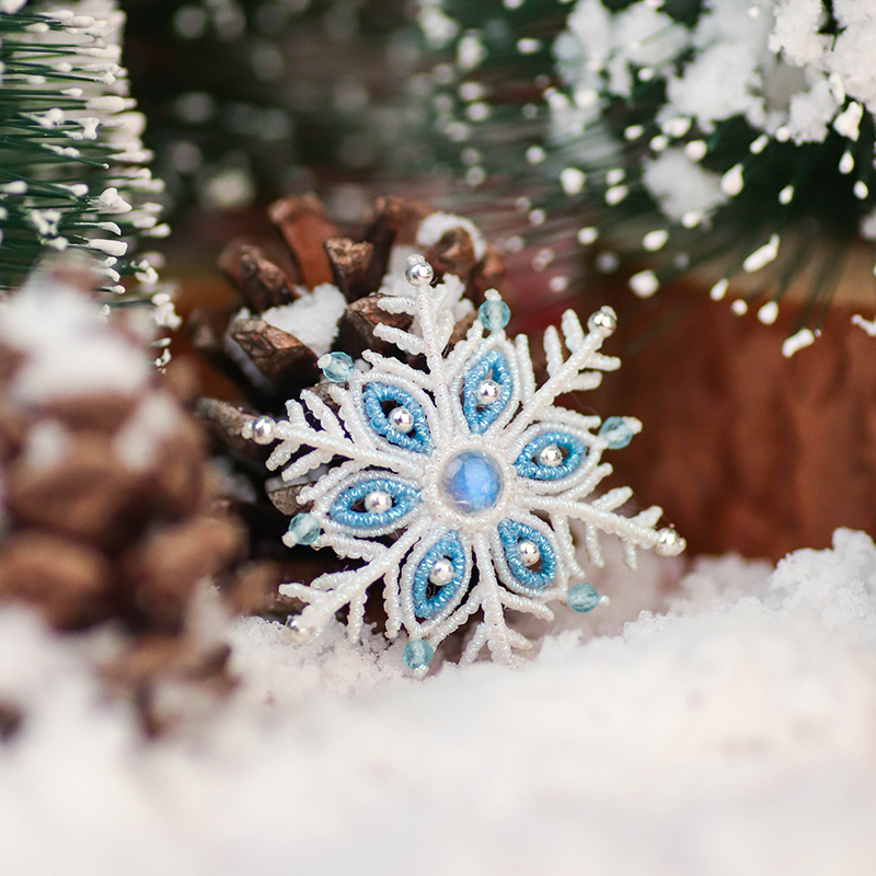 栖石原创设计初级编绳教程雪花冬天浪漫唯美吻雪编绳首饰胸针