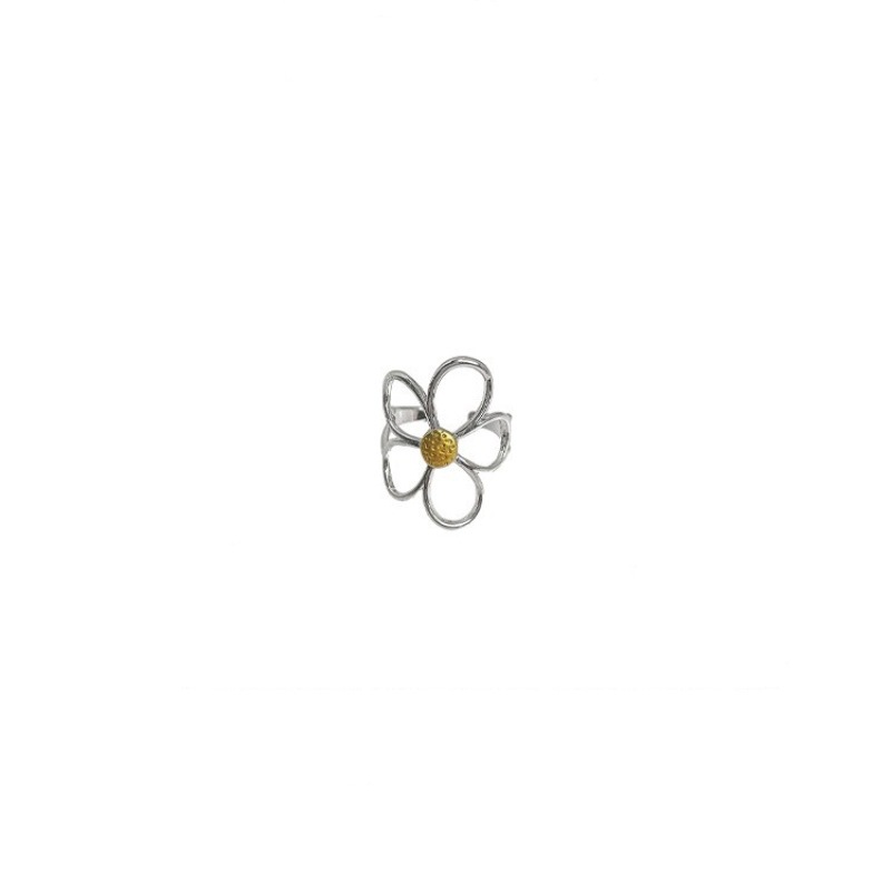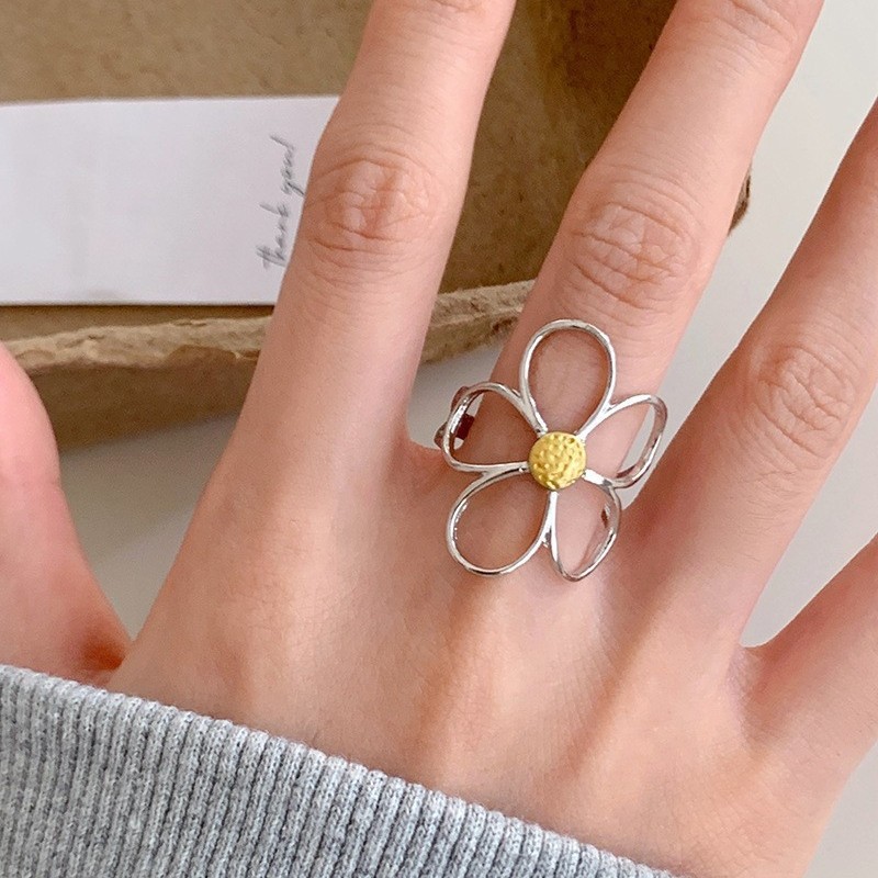 镂空雏菊花朵戒指女小众设计感做旧S925镀银开口食指戒百搭指环潮