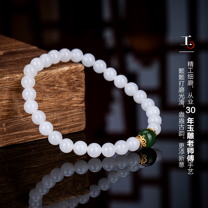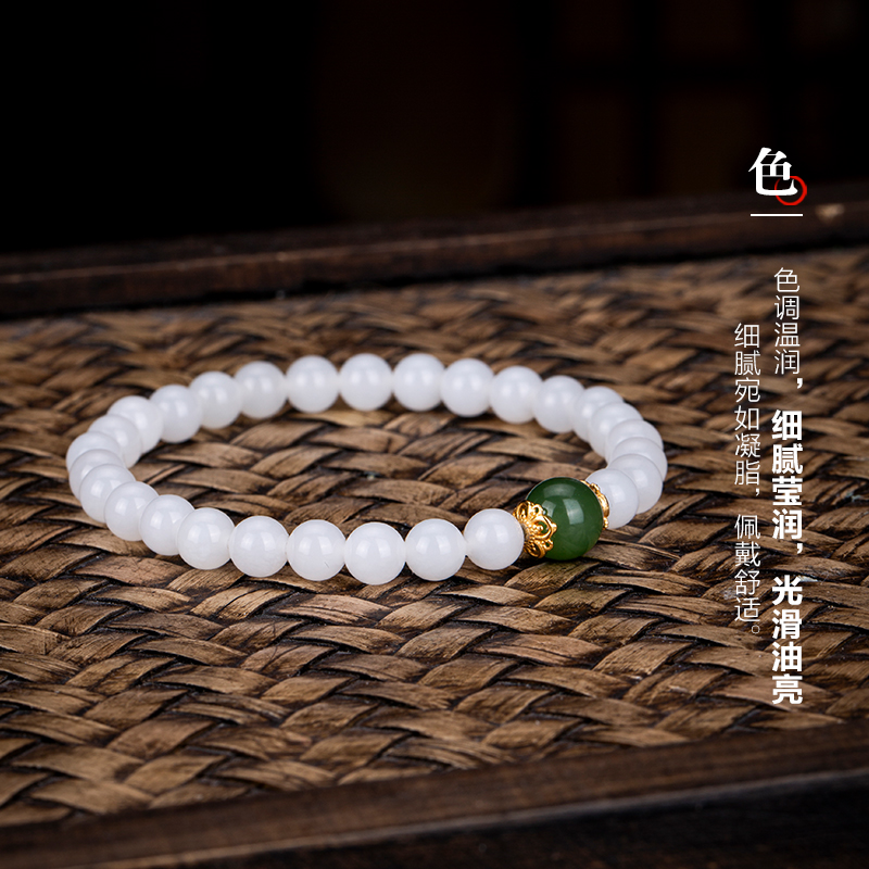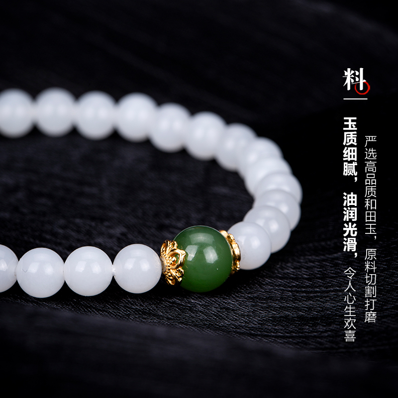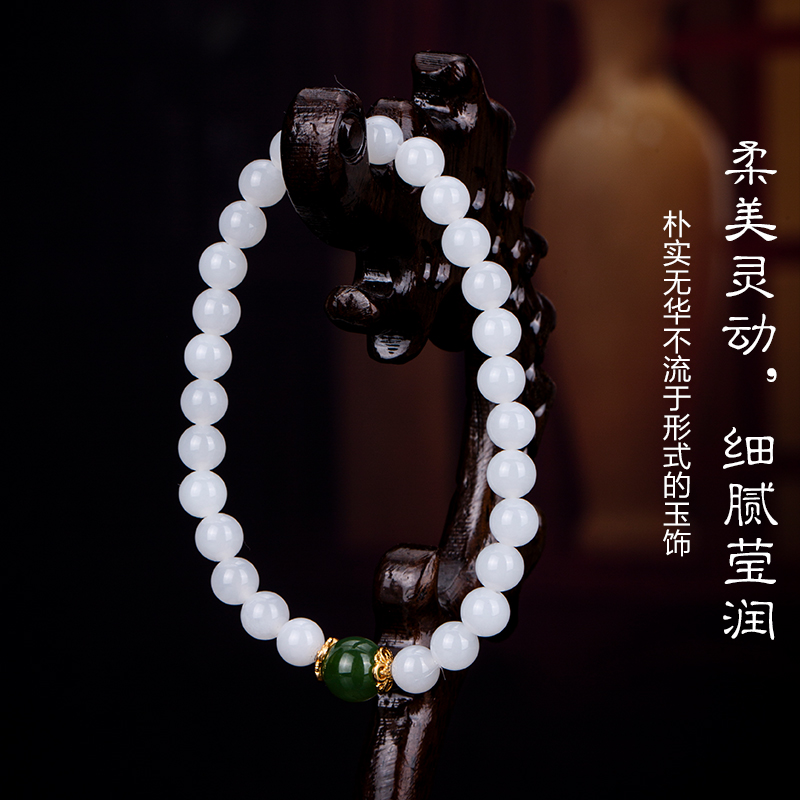 七彩云南和田玉白玉软玉手串手链珠串手把件送女友送爱人生日礼物