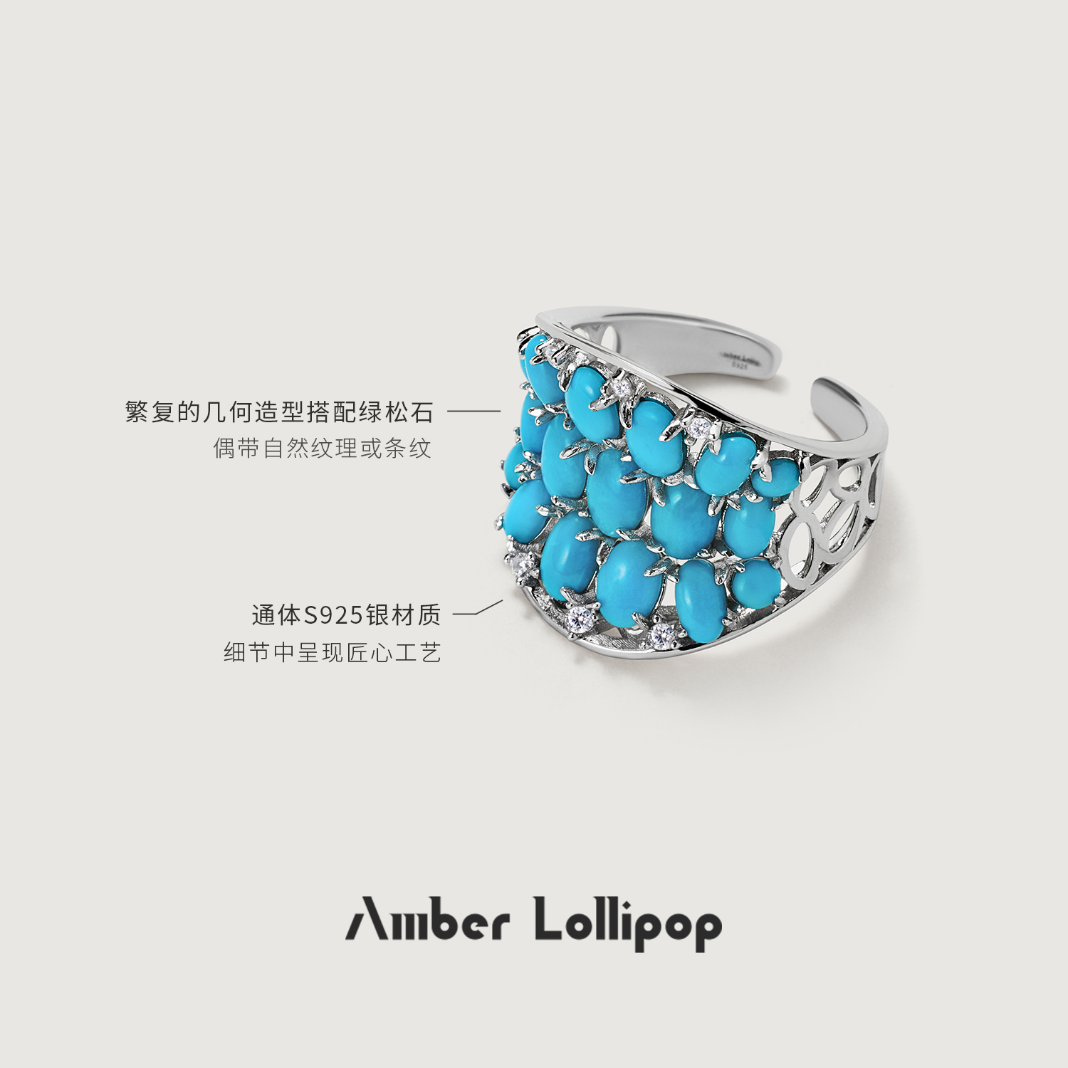 Amber Lollipop天然绿松石戒指轻奢高级感开口戒小众设计食指戒女