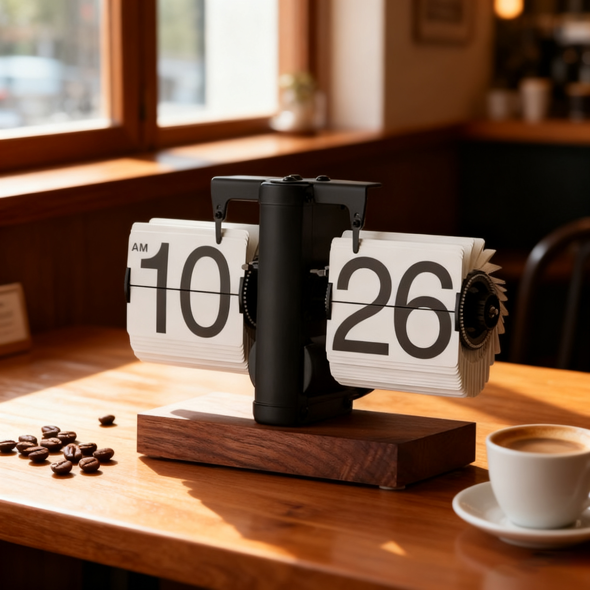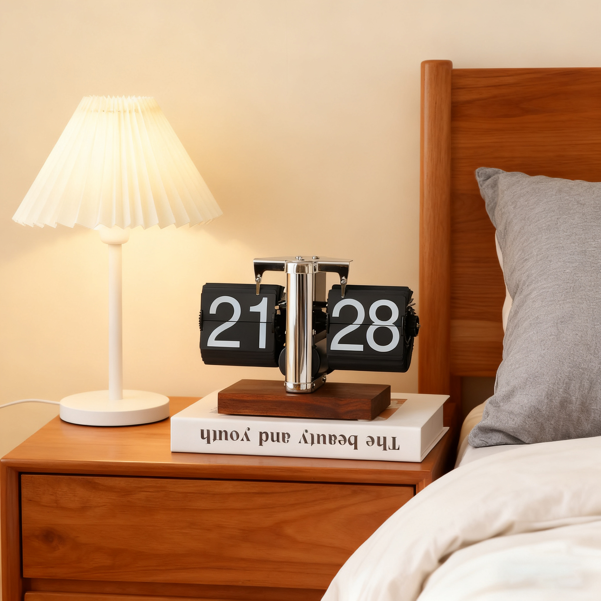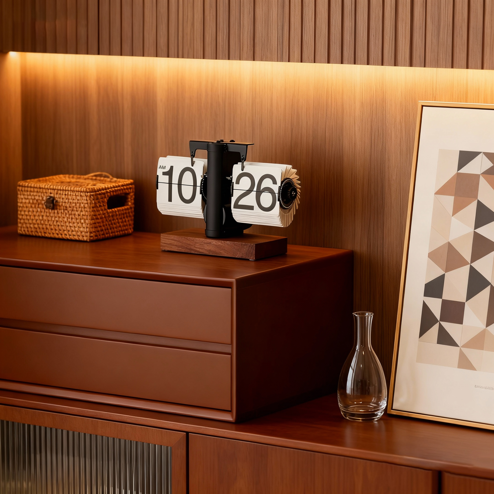 客厅轻奢高档自动翻页时钟办公室桌面摆件高级感小众电视柜装饰品