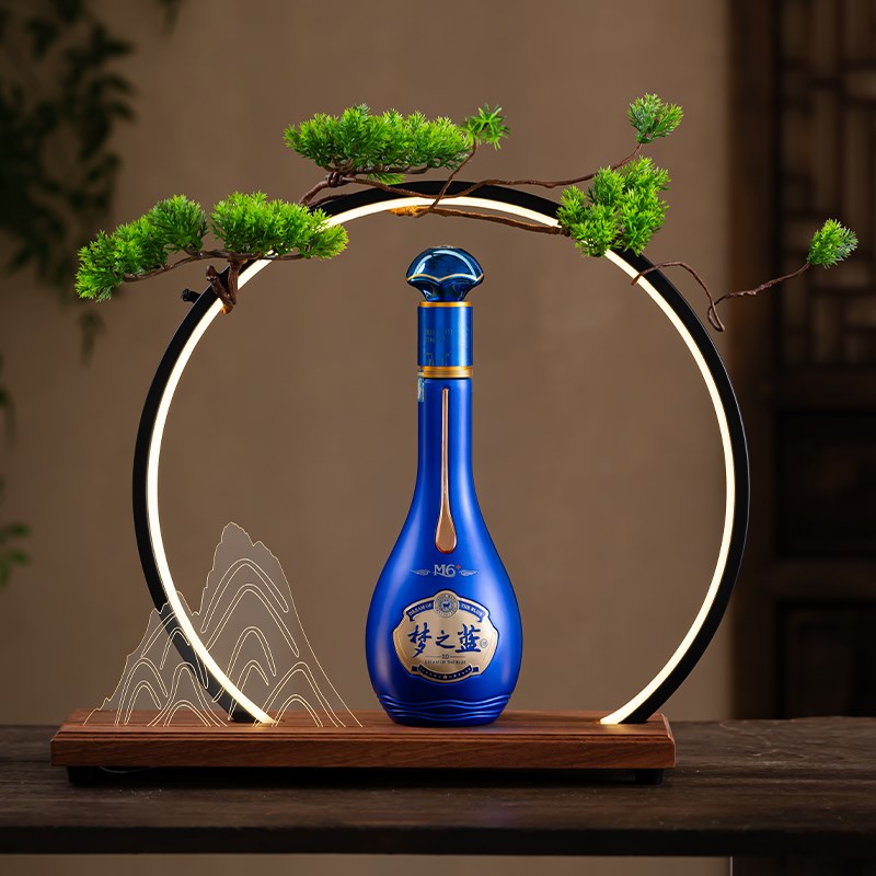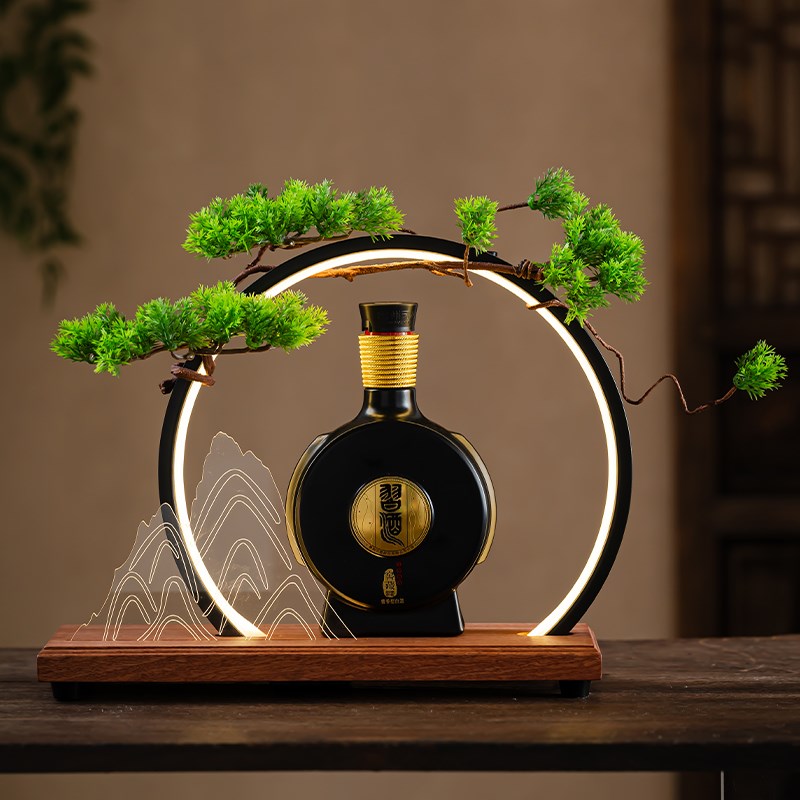 创意透光群山led灯白酒展示台 红酒展示架品鉴会高端酒瓶红木底座
