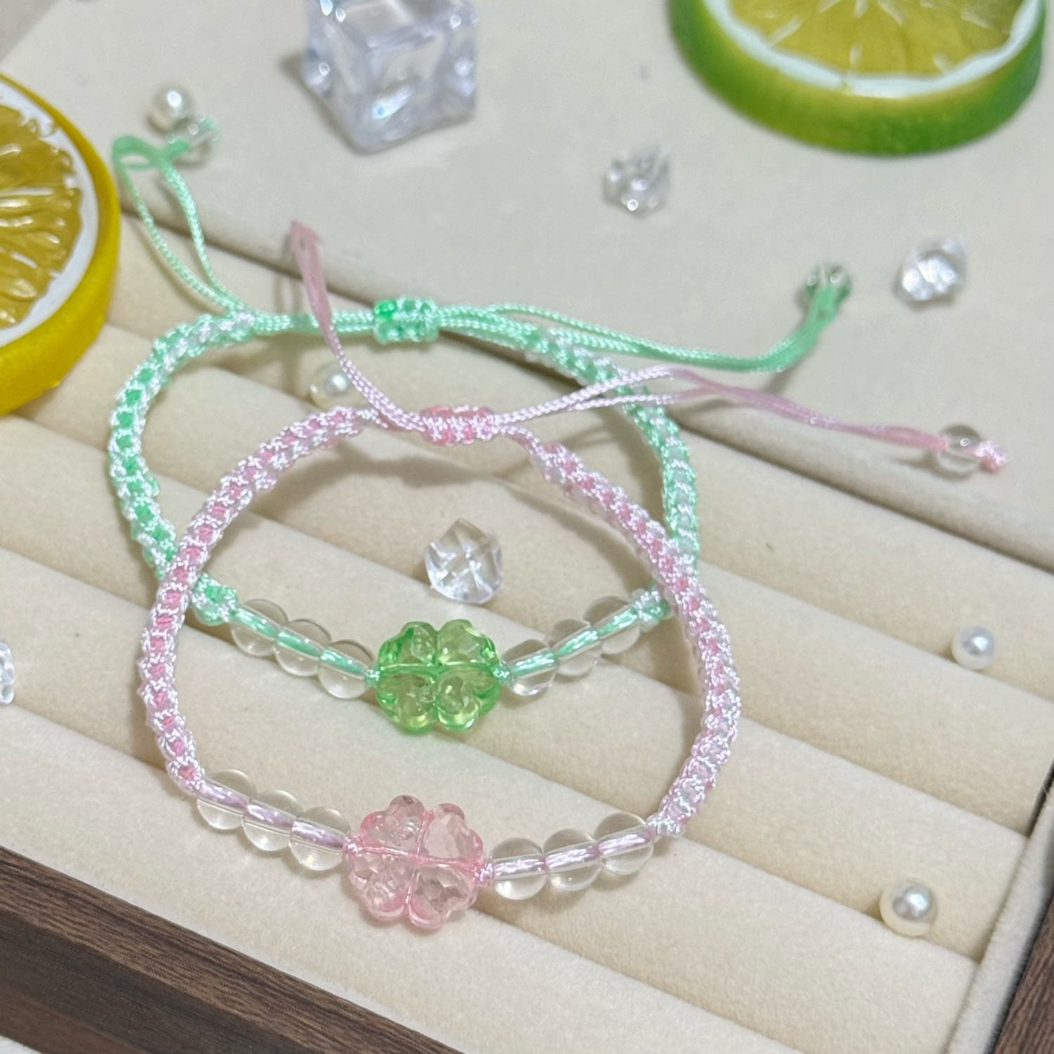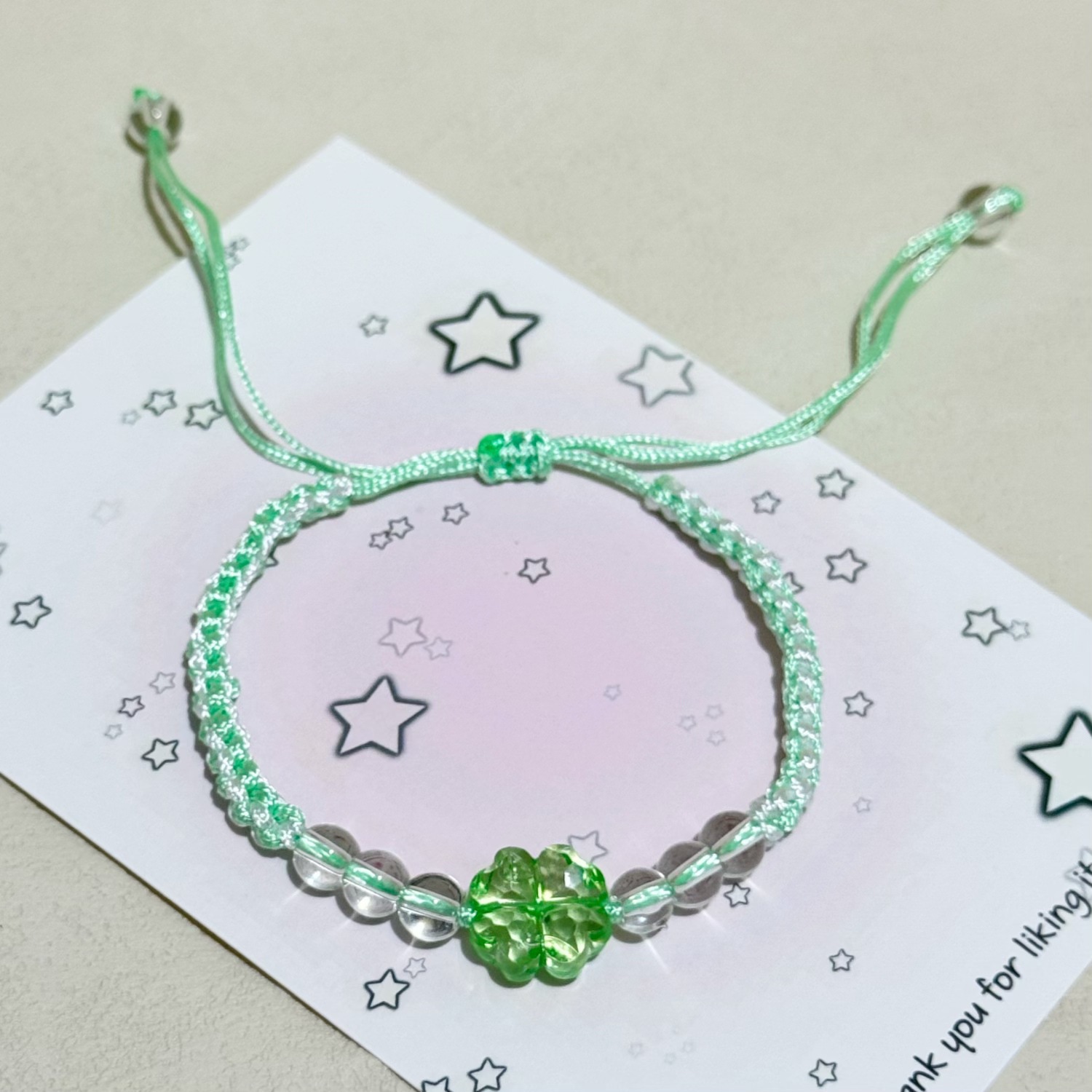 闪闪幸运四叶草原创绿色手链手工编织高颜值手绳送闺蜜女友礼物