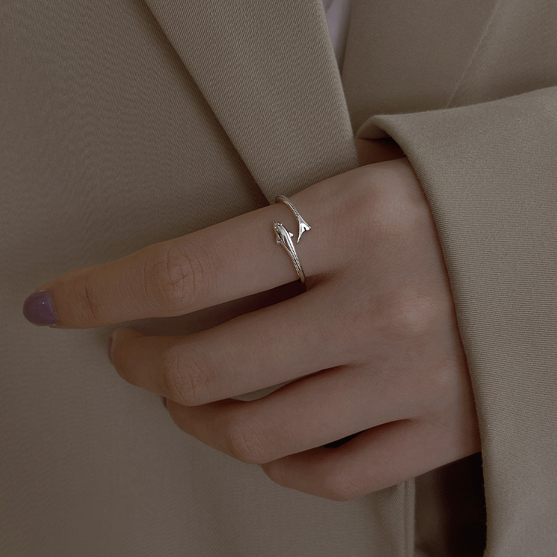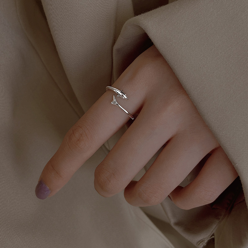925纯银海豚戒指女小众设计鱼尾食指戒素圈时尚个性开口戒子尾戒