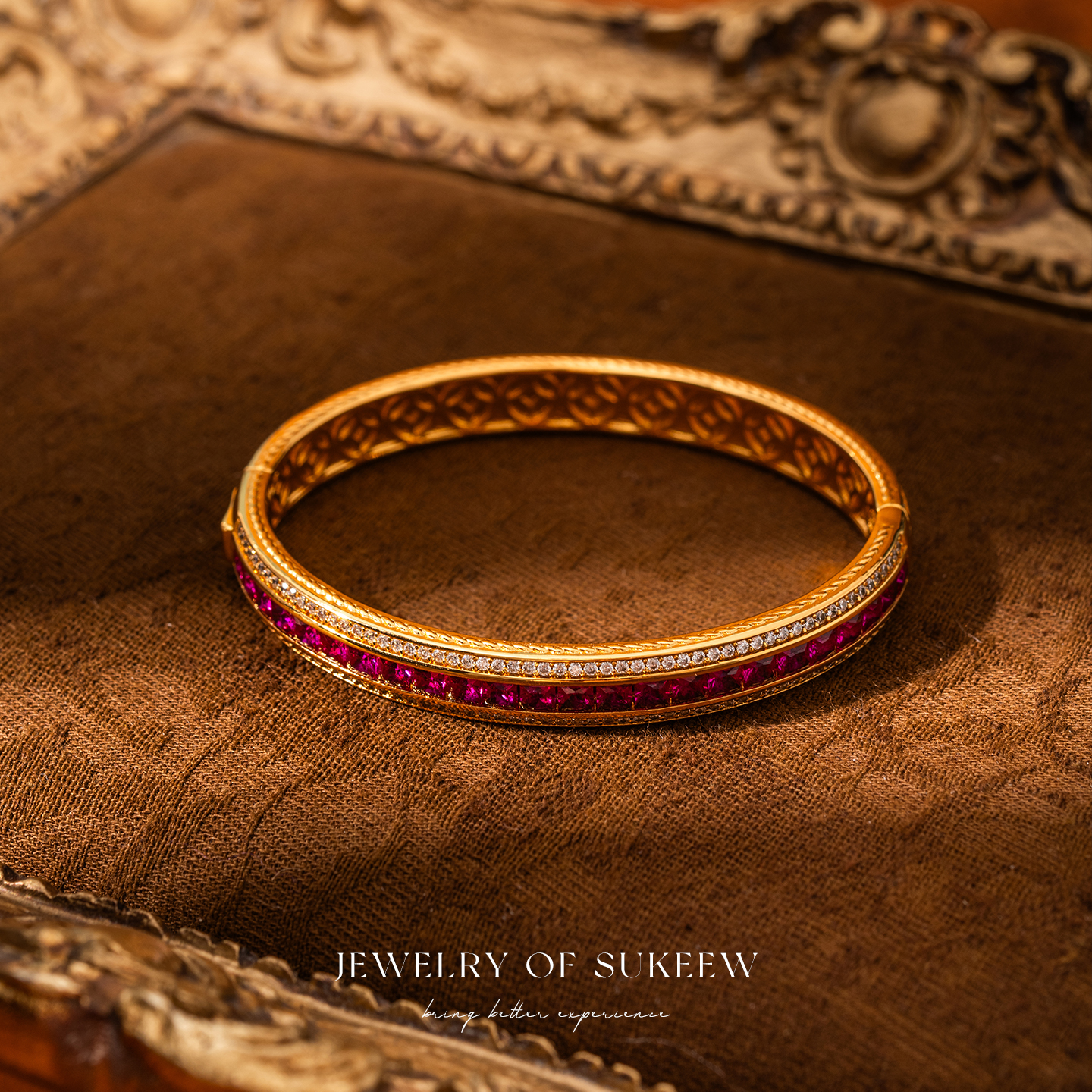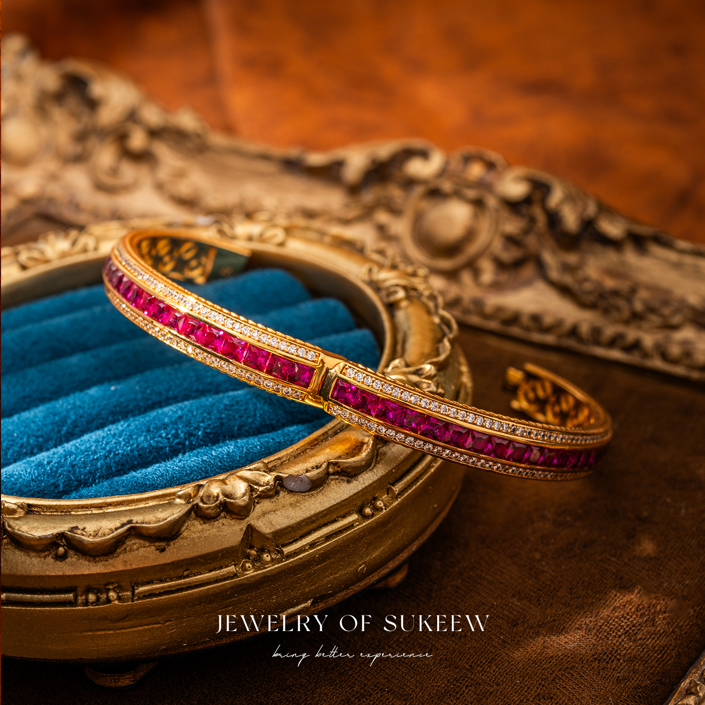 SUKEEW/酥可 当红不让·点钻红宝石气质手镯爆闪轻奢排钻精致手环