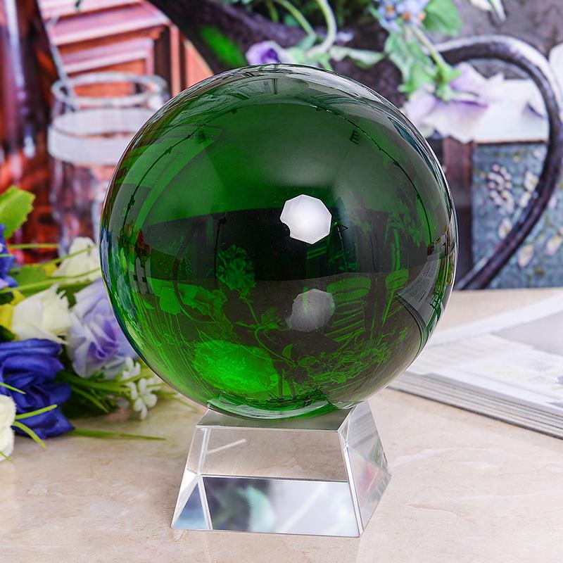 高档大小号绿色水晶球摆件 客厅书房卧室桌面装饰品开业乔迁礼品