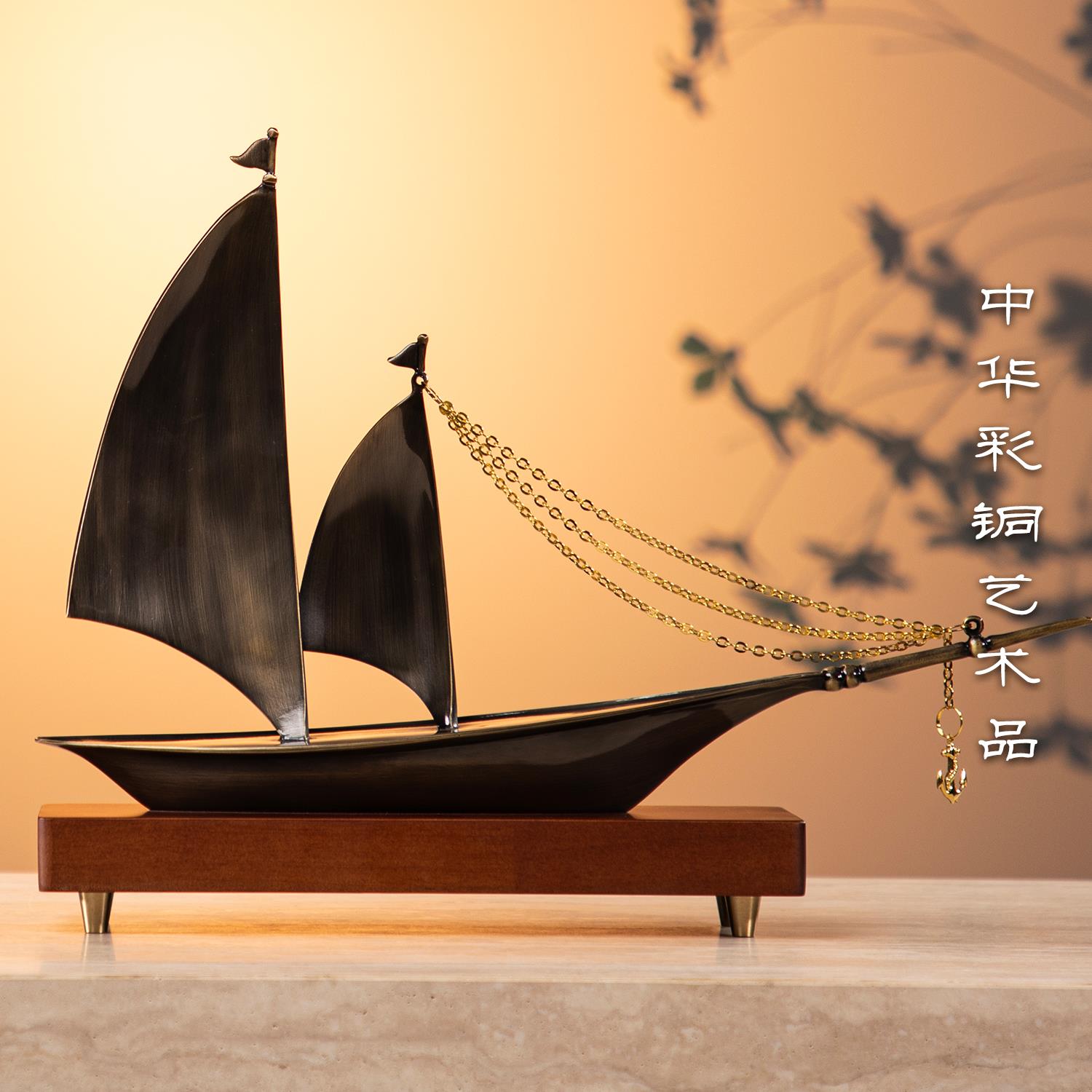办公室公司开 业礼物一帆风顺全铜帆船摆件客厅玄关酒柜桌面装饰