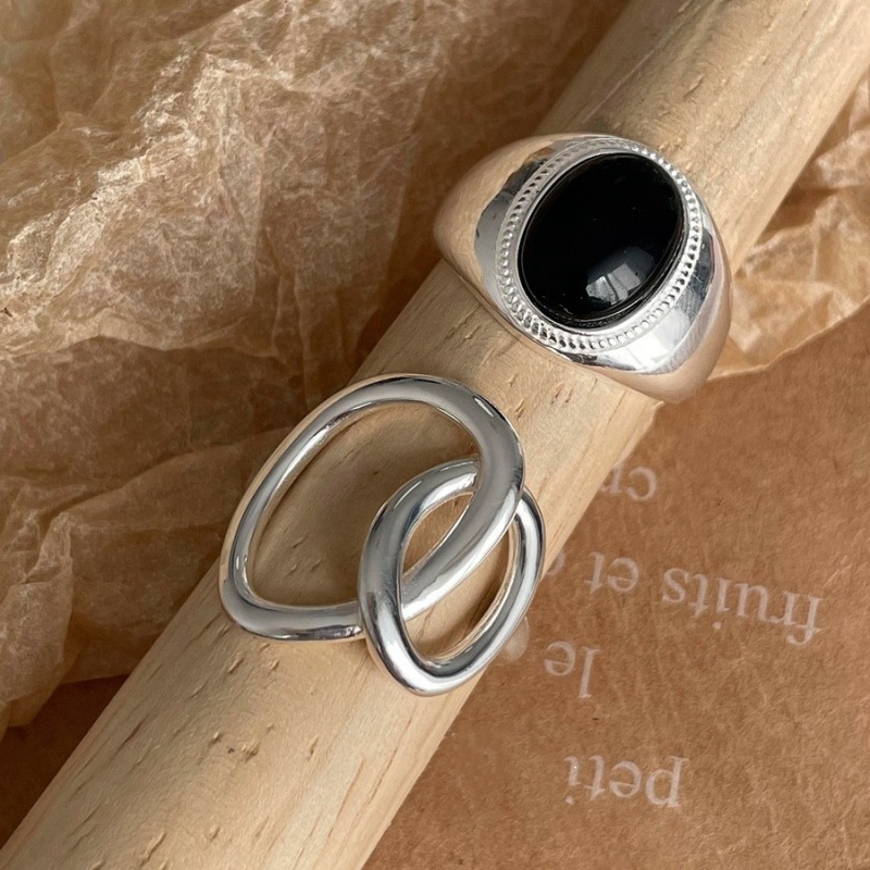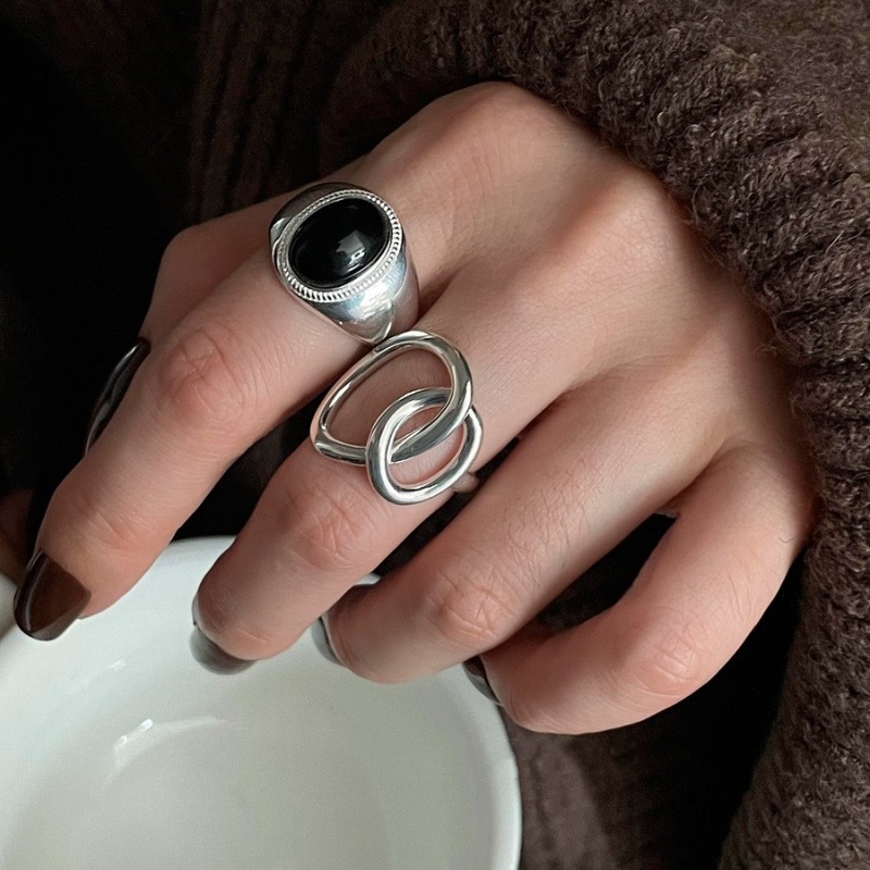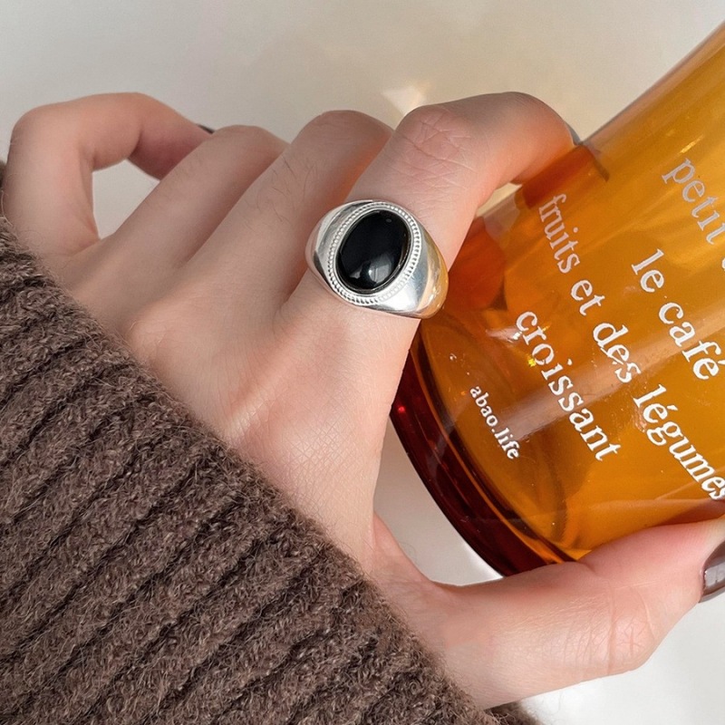 甜酷黑色锆石戒指女个性嘻哈时尚朋克S925银开口指环叠戴食指戒潮