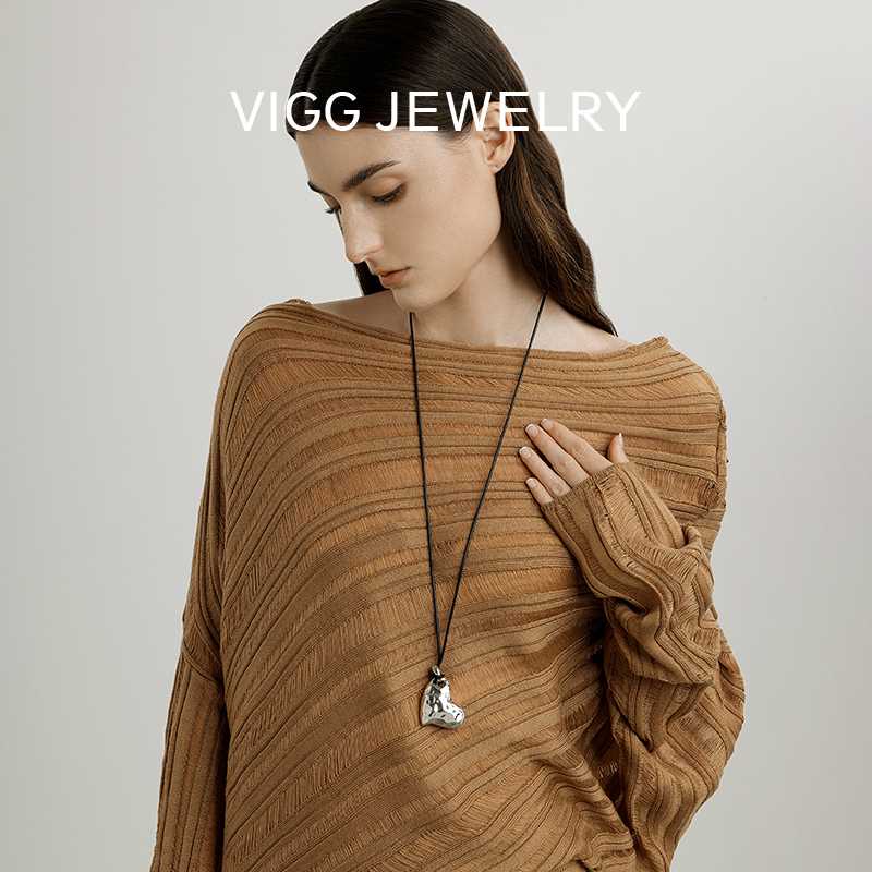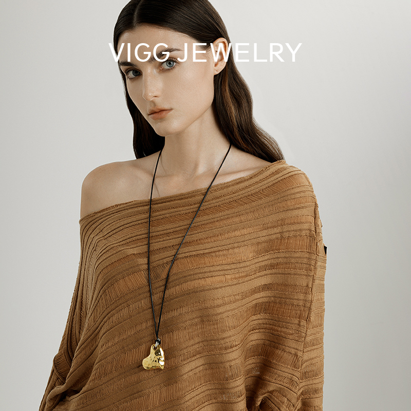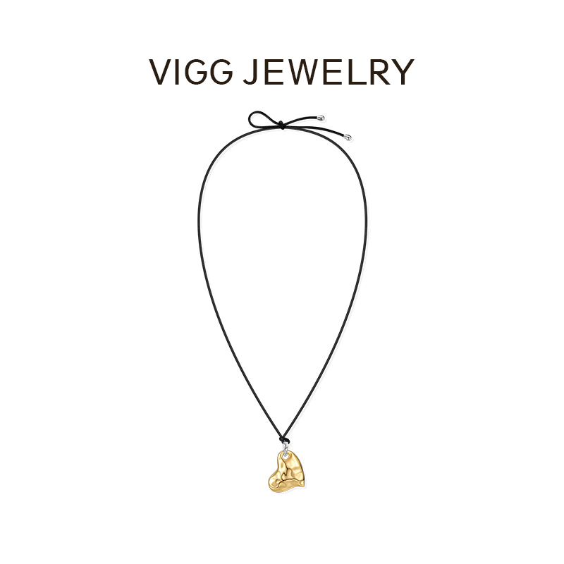 VIGG岩心项链女轻奢小众高级感爱心吊坠饰品蜡皮绳简约时尚百搭