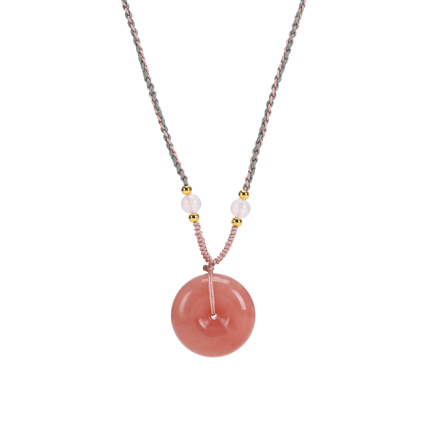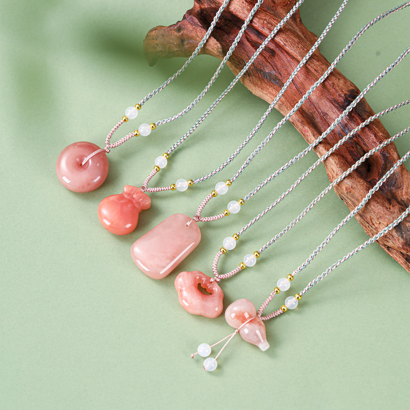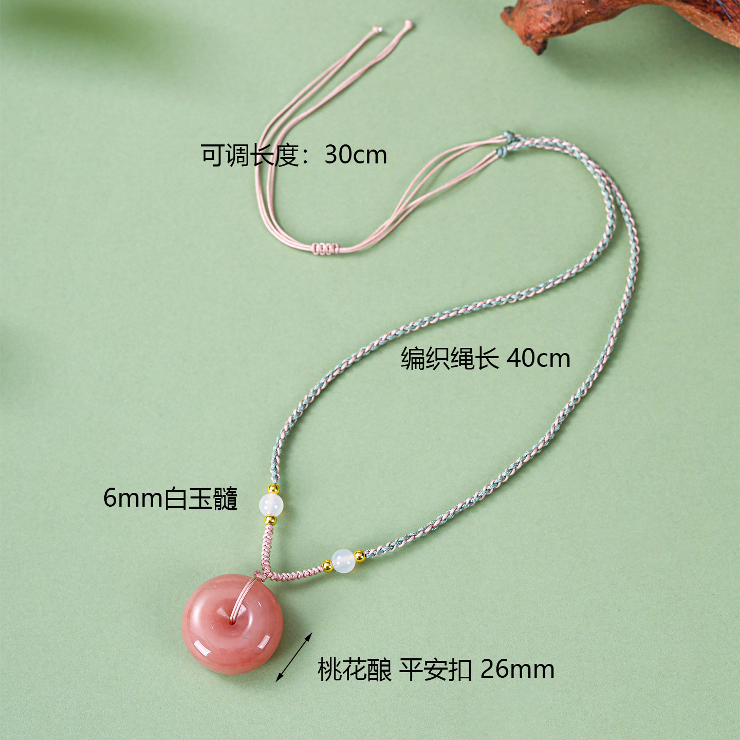 珞石天然桃花酿葫芦祥云平安扣吊坠项链女编织绳链招财转运装饰品