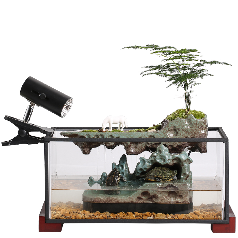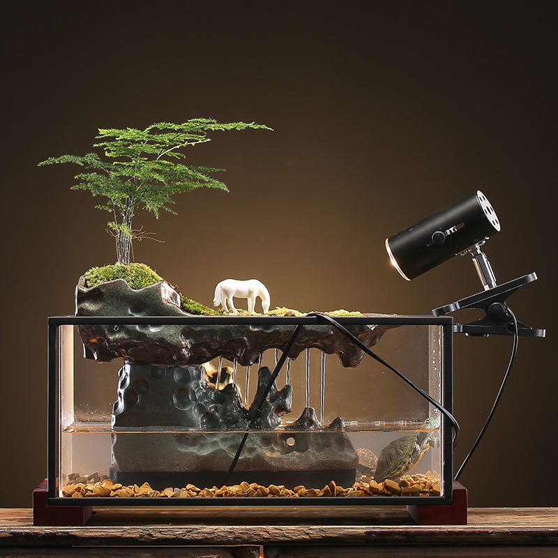 新中式创意乌龟缸鱼缸饲养箱带晒台流水陶K瓷假山喷泉摆件家用送