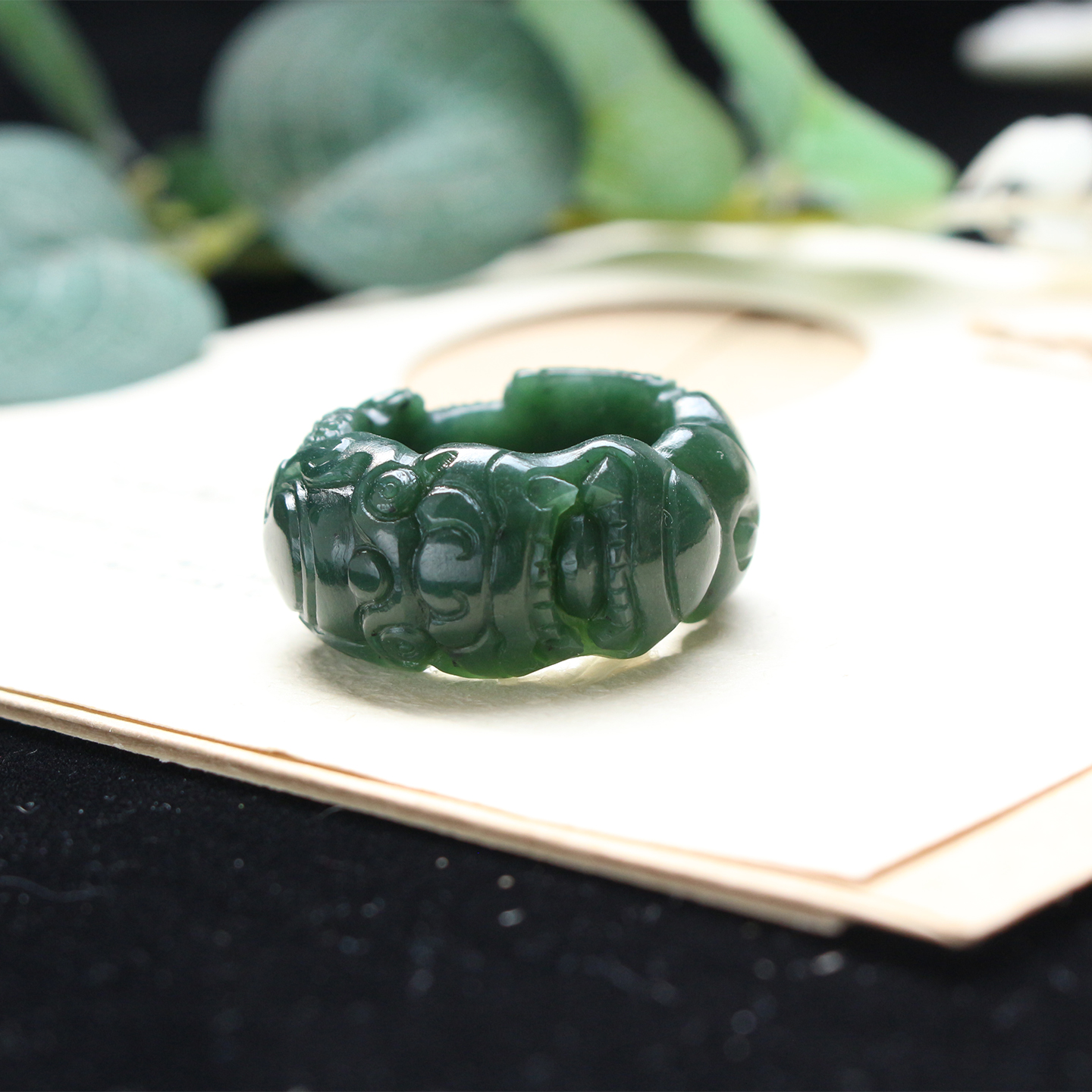 原创新款和田玉碧玉貔貅扳指20mm福寿如意男女款可定制加工指环