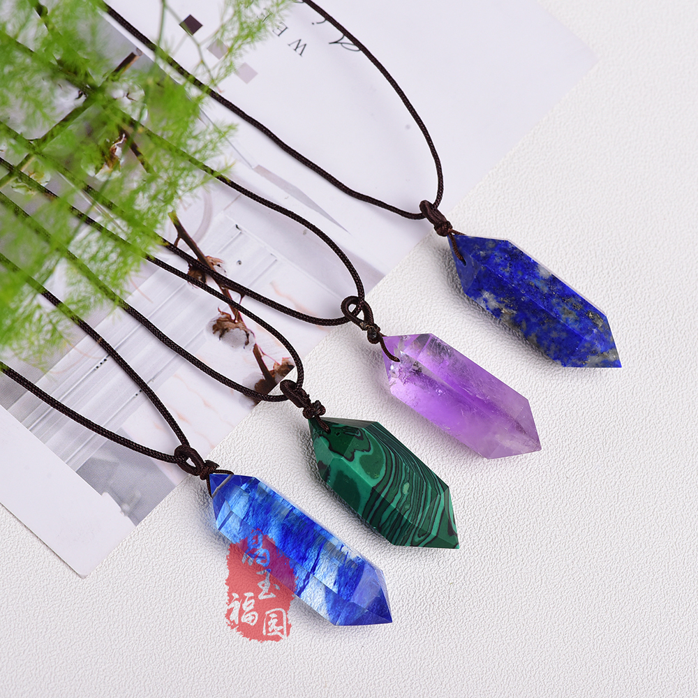 天然水晶原石双尖六棱柱青金石吊坠粉晶民族风编织绳情侣项链饰品
