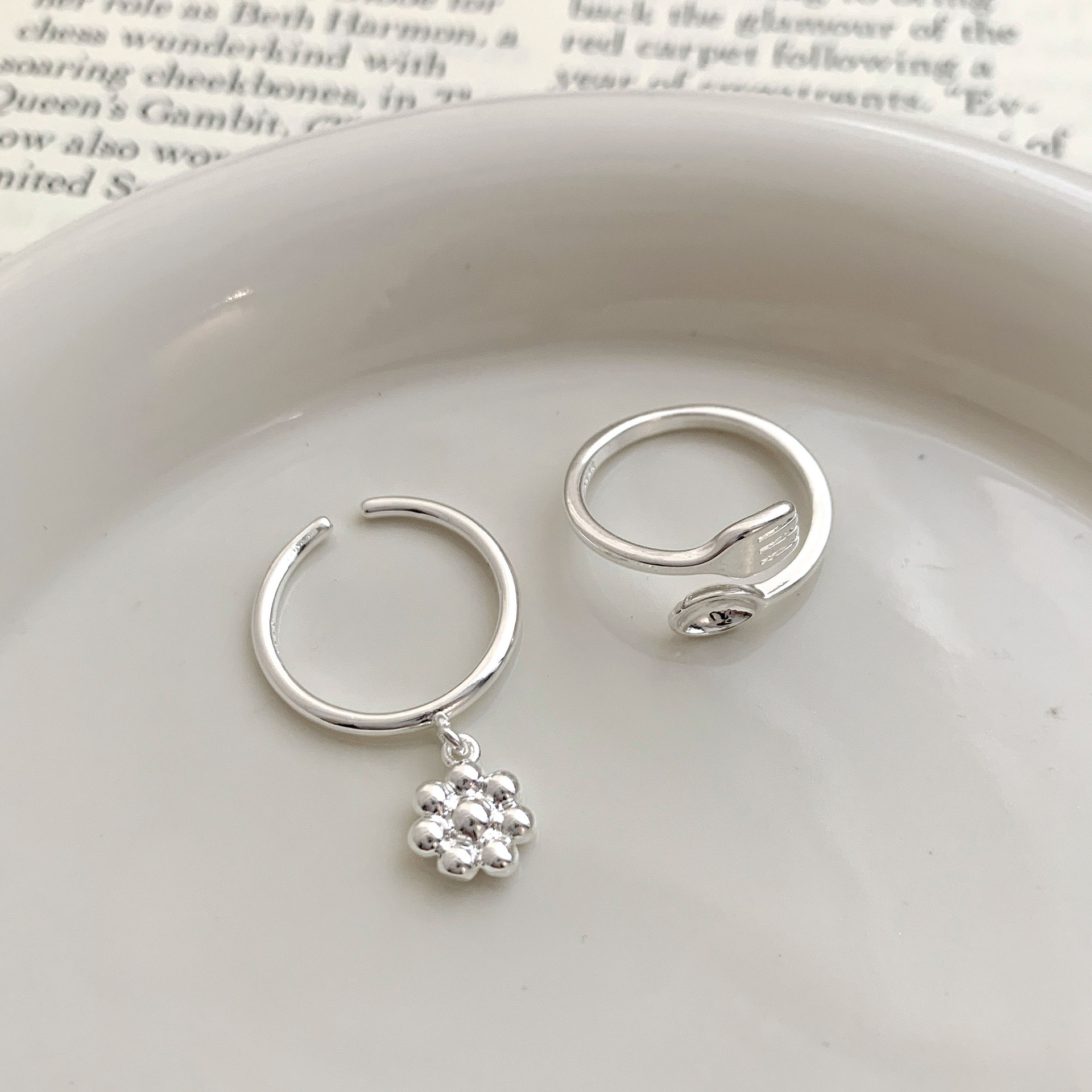 一恋少女心迷你刀叉戒指创意趣味设计感小花吊坠开口指环百搭食指