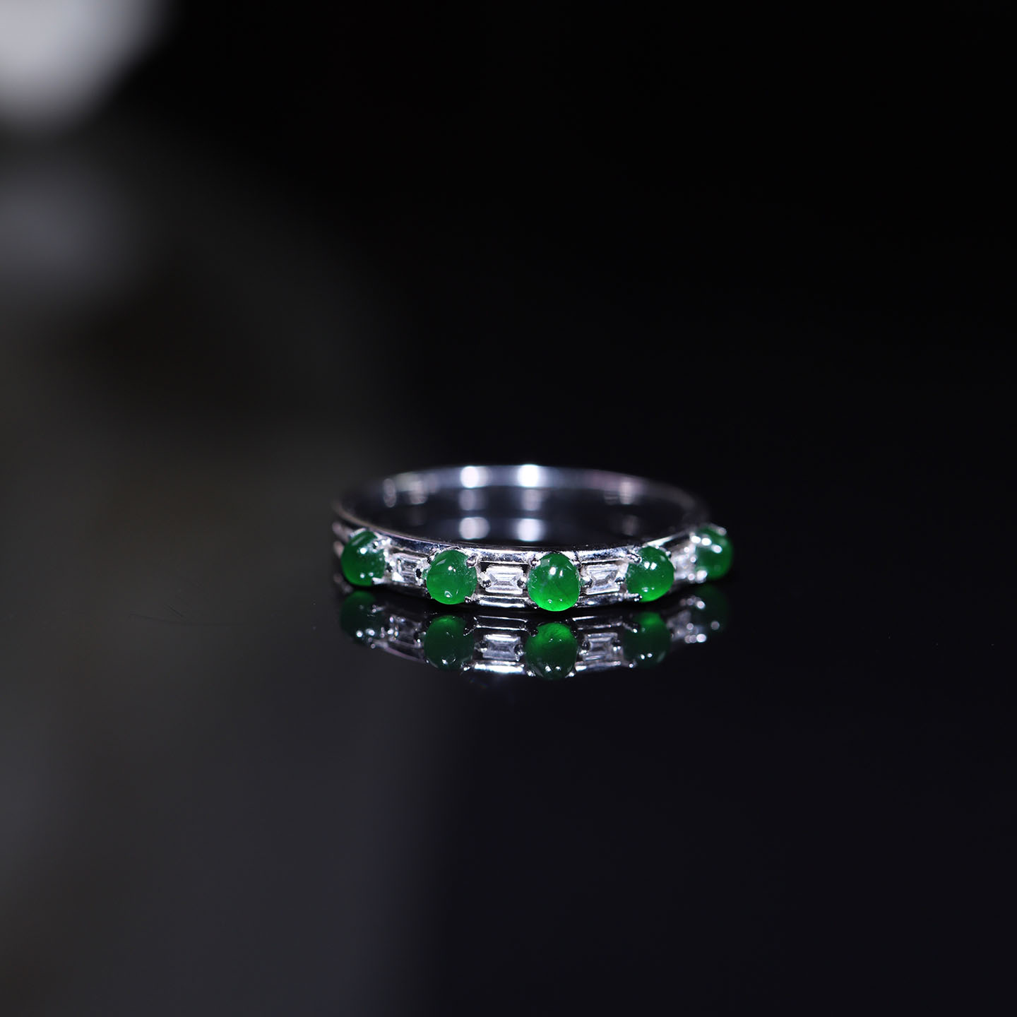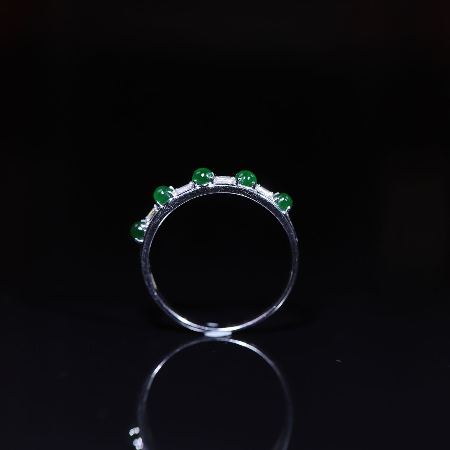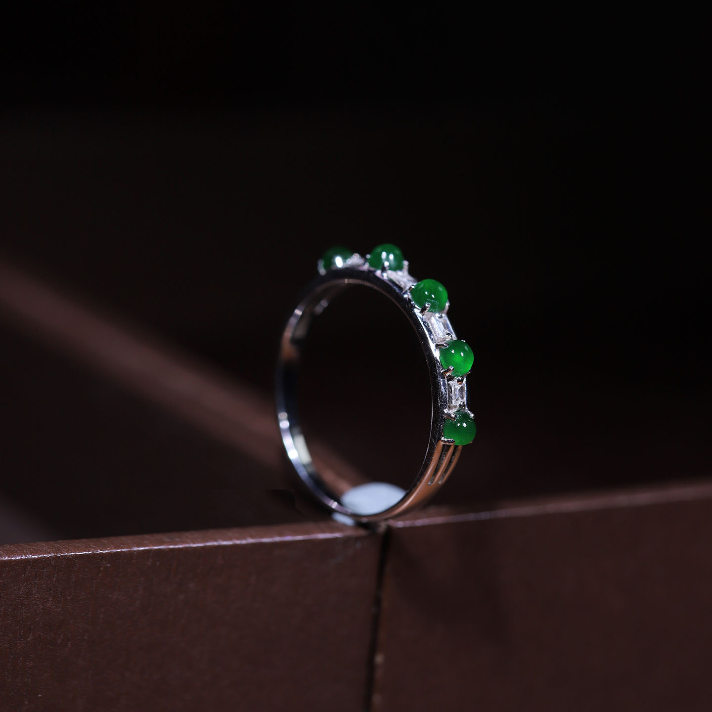 玉秀18K金镶翡翠排戒女款古风新中式戒指手饰苏工籽料定制带证书